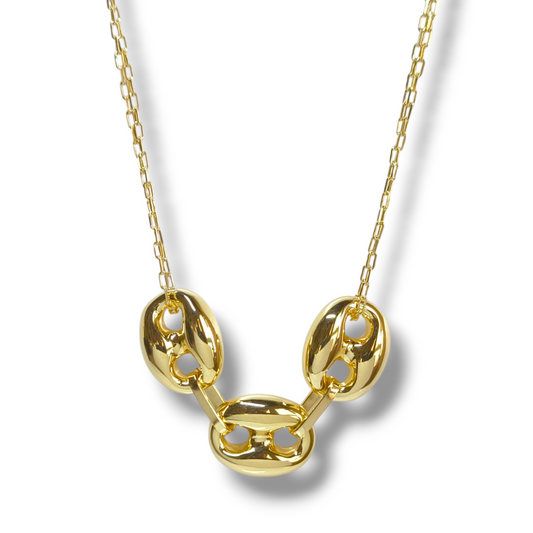 Gold-plated silver choker with a grain-shaped link and a central zirconia pavé plate