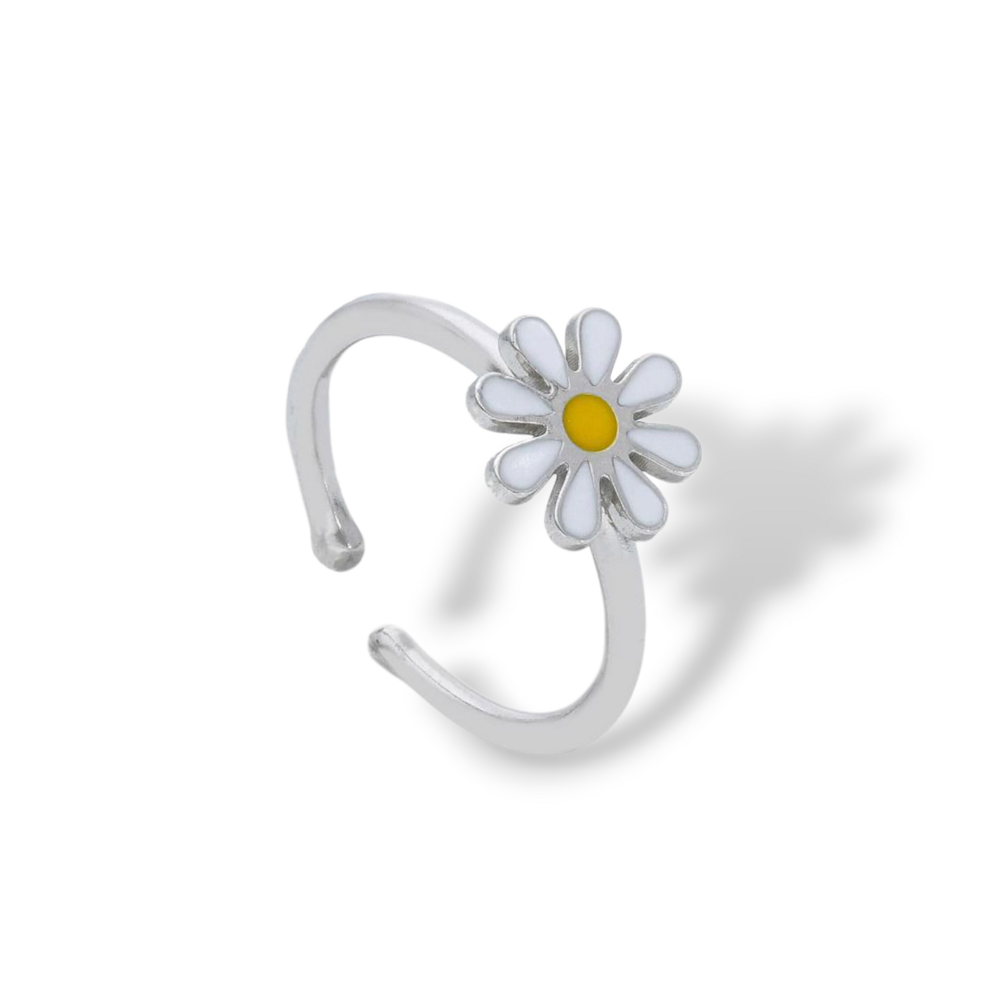Enamelled baby daisy silver rings