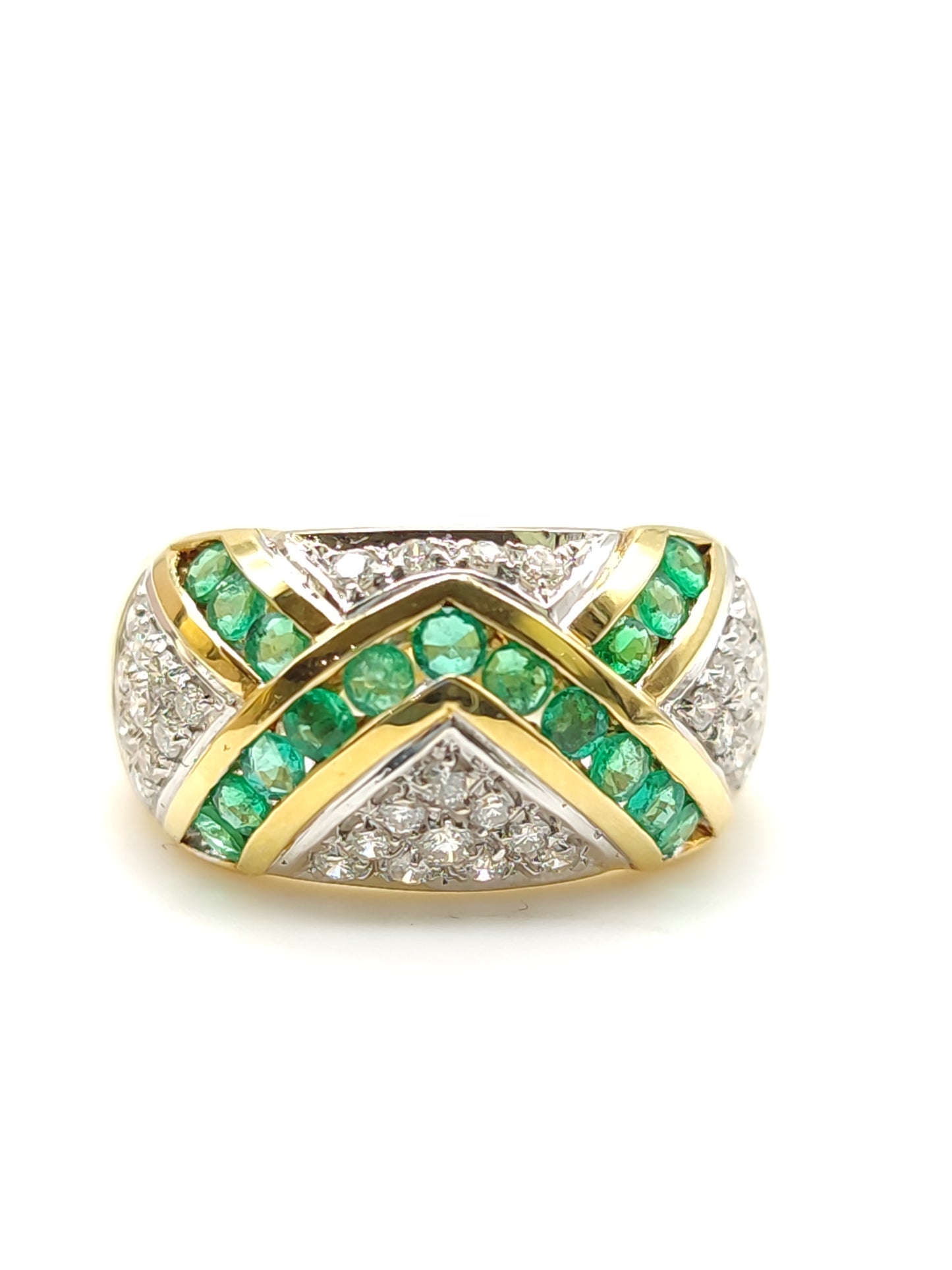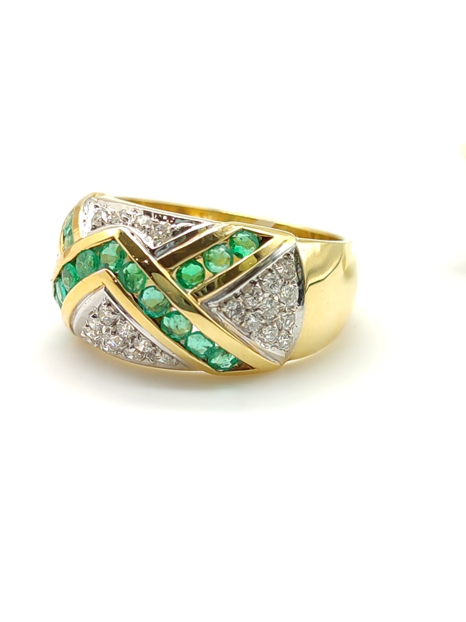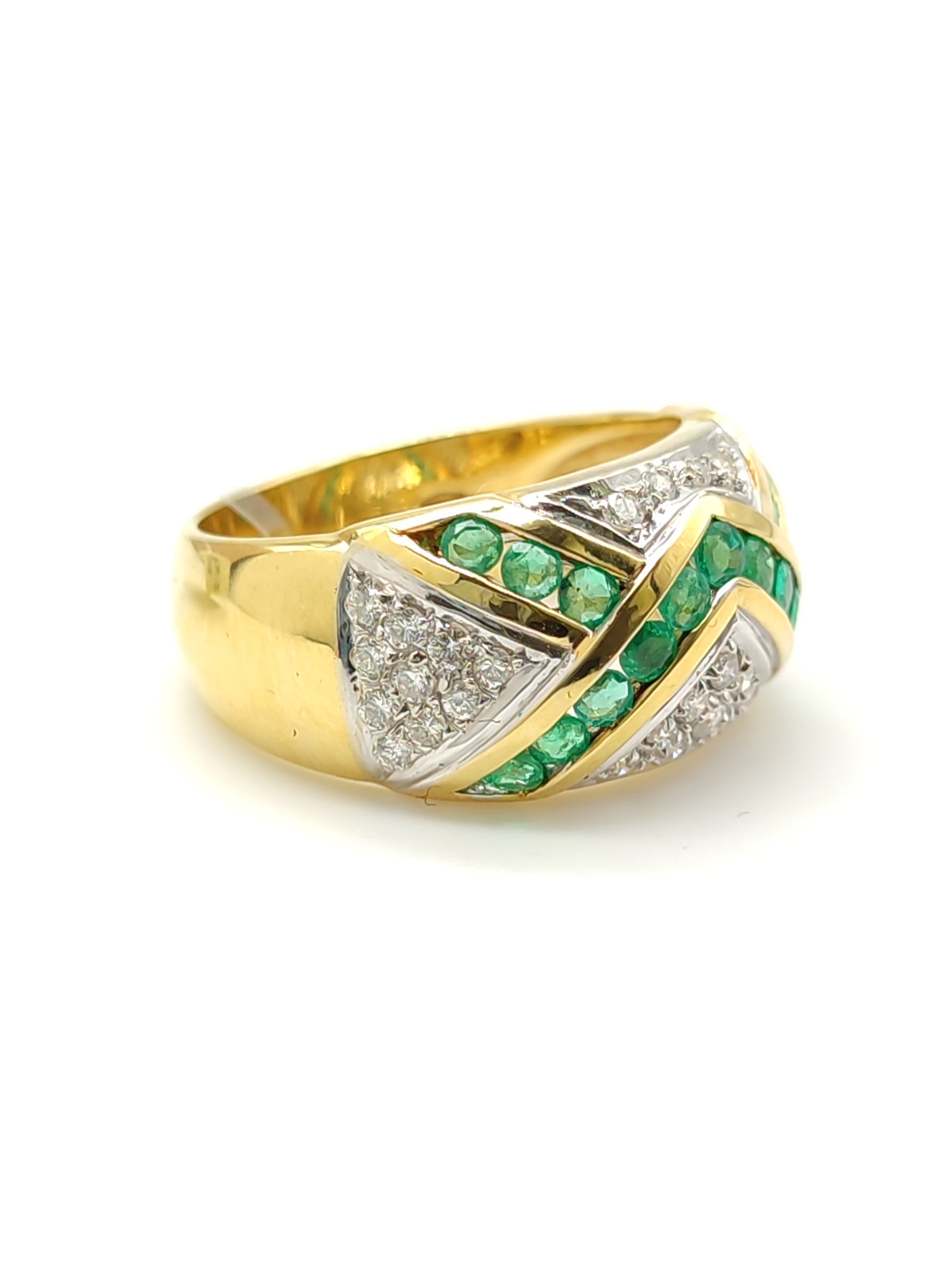 Gold ring with emeralds and diamonds