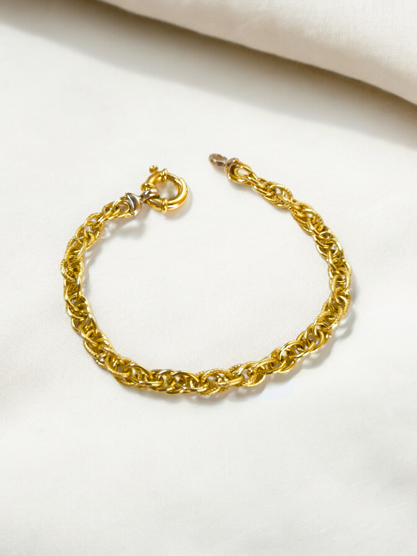 This yellow gold bracelet is crafted from 18kt gold and features a fancy mesh with interlocking rings. An elegant and quality piece of jewelry that will add a touch of class and style to your look. Ideal for everyday wear or for special occasions. Shop now and enjoy the beauty and versatility of this bracelet.