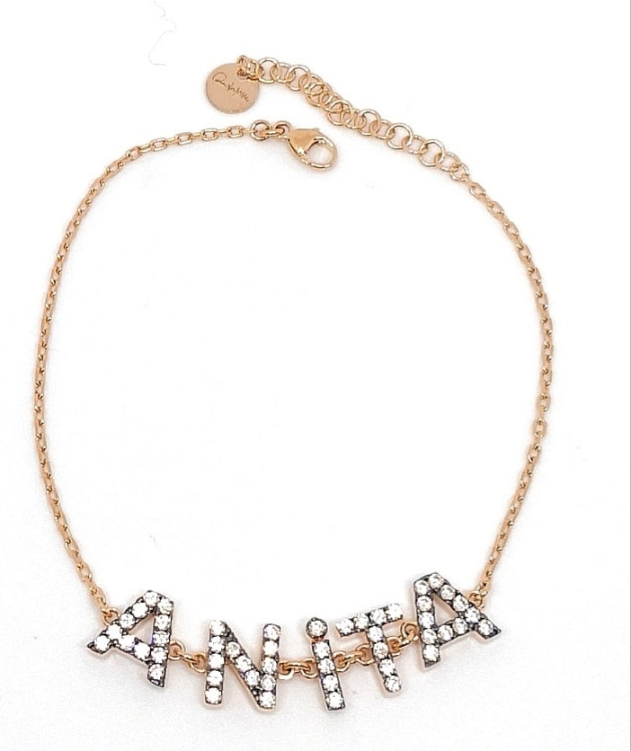 A personalized bracelet with the name Anita in pink silver and zirconia. Enchant with your name, illuminated by the splendor of silver and the elegance of zirconia. Capture attention with this unique and chic bracelet, perfect for any occasion.