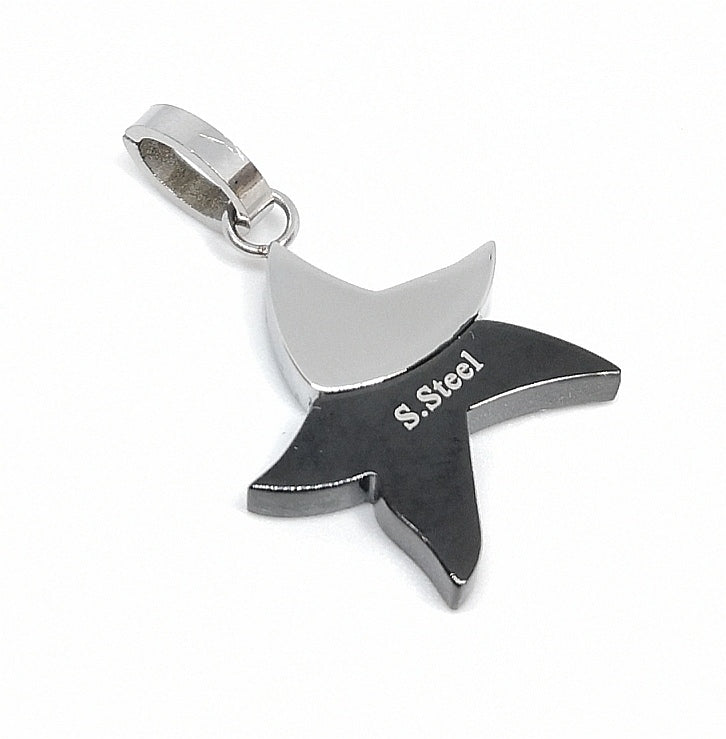 Star-shaped steel pendant with pavé zirconia detail and black anodized finish.