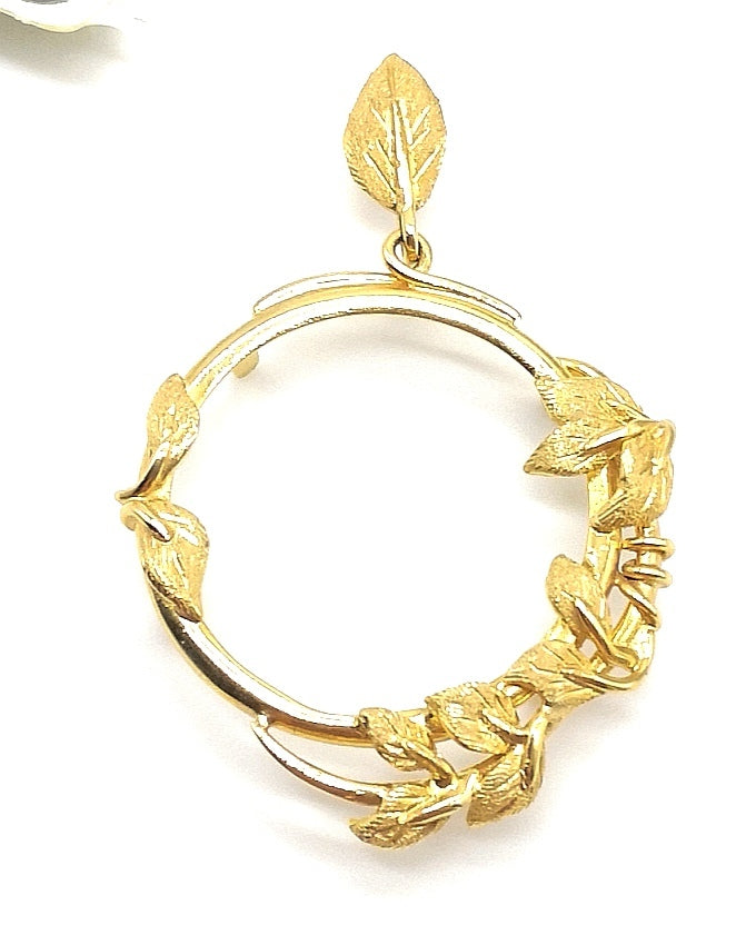 Gold coin/sovereign purse, handcrafted with hand engraved flowers surrounding the ring and hand engraved leaf shaped counter link