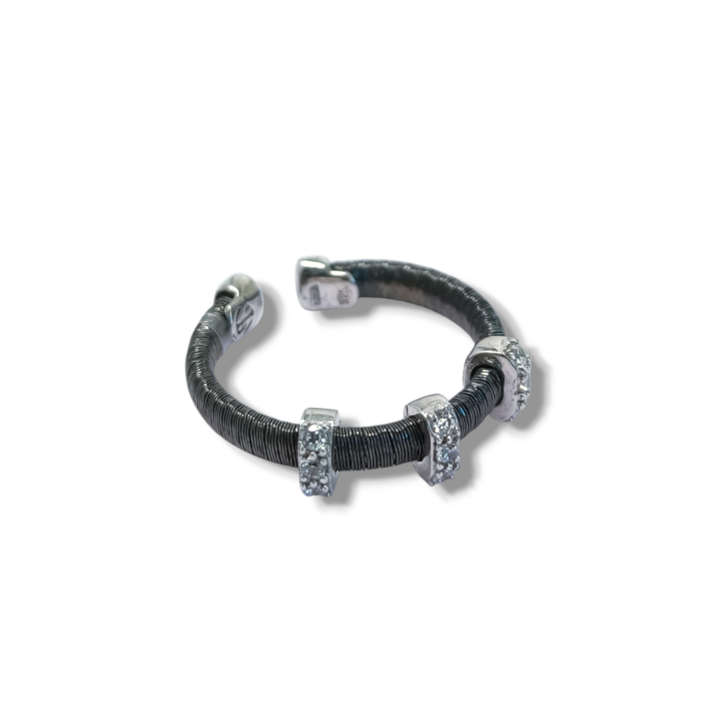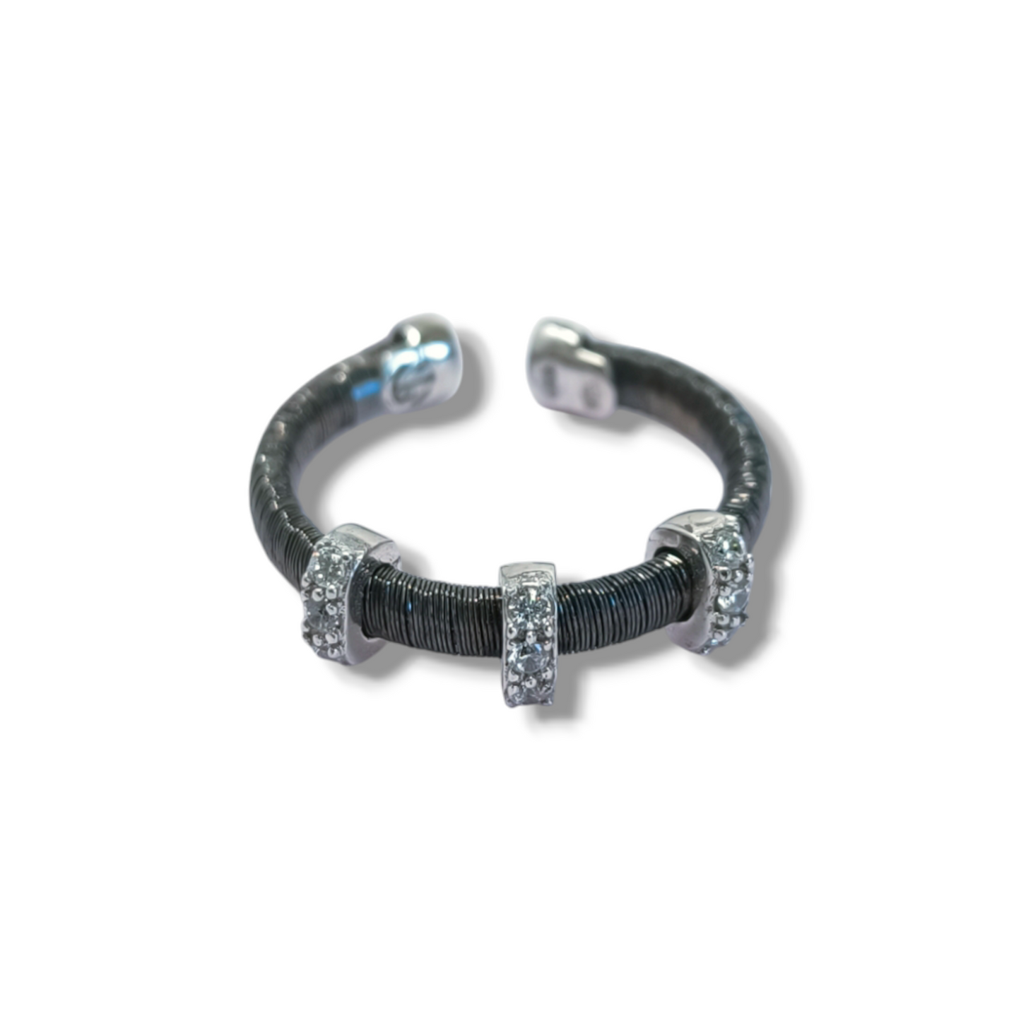 filo in argento brunito con tre barrette in pavè di zirconie