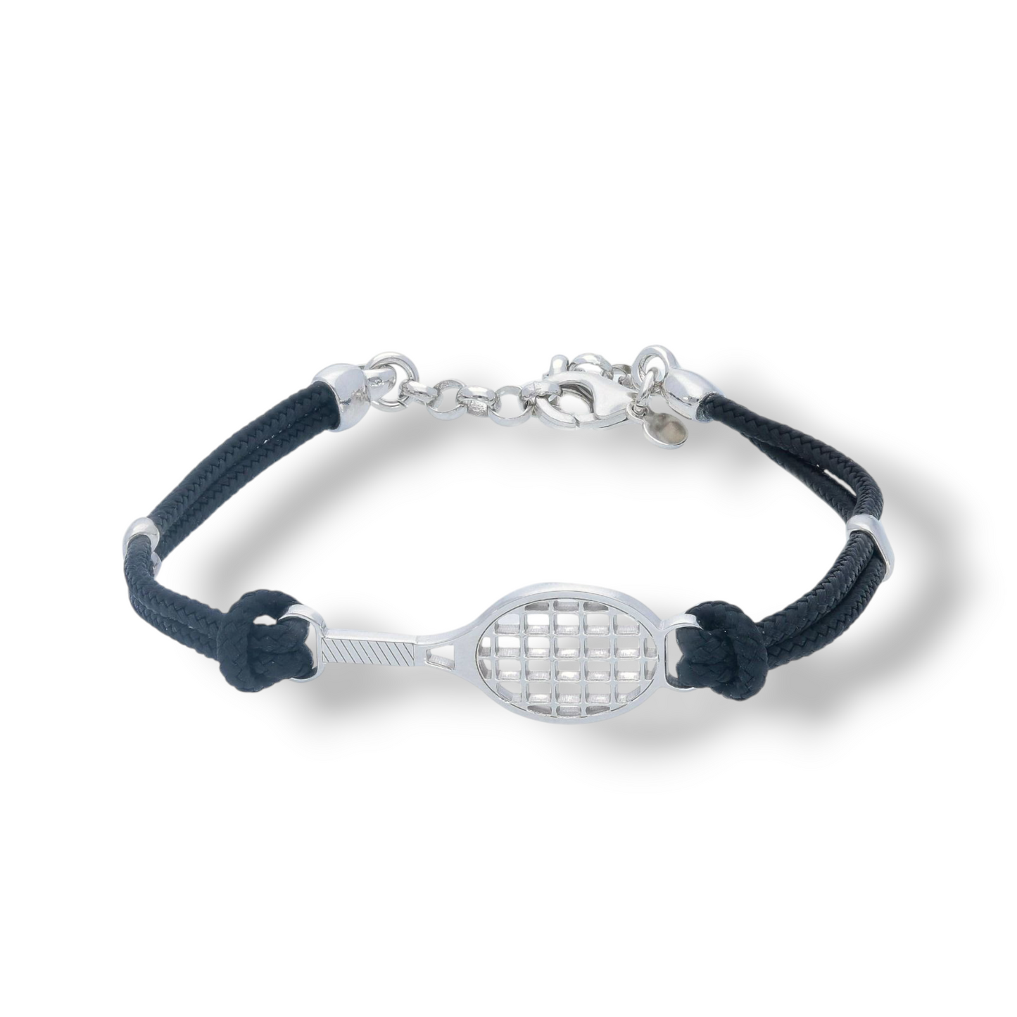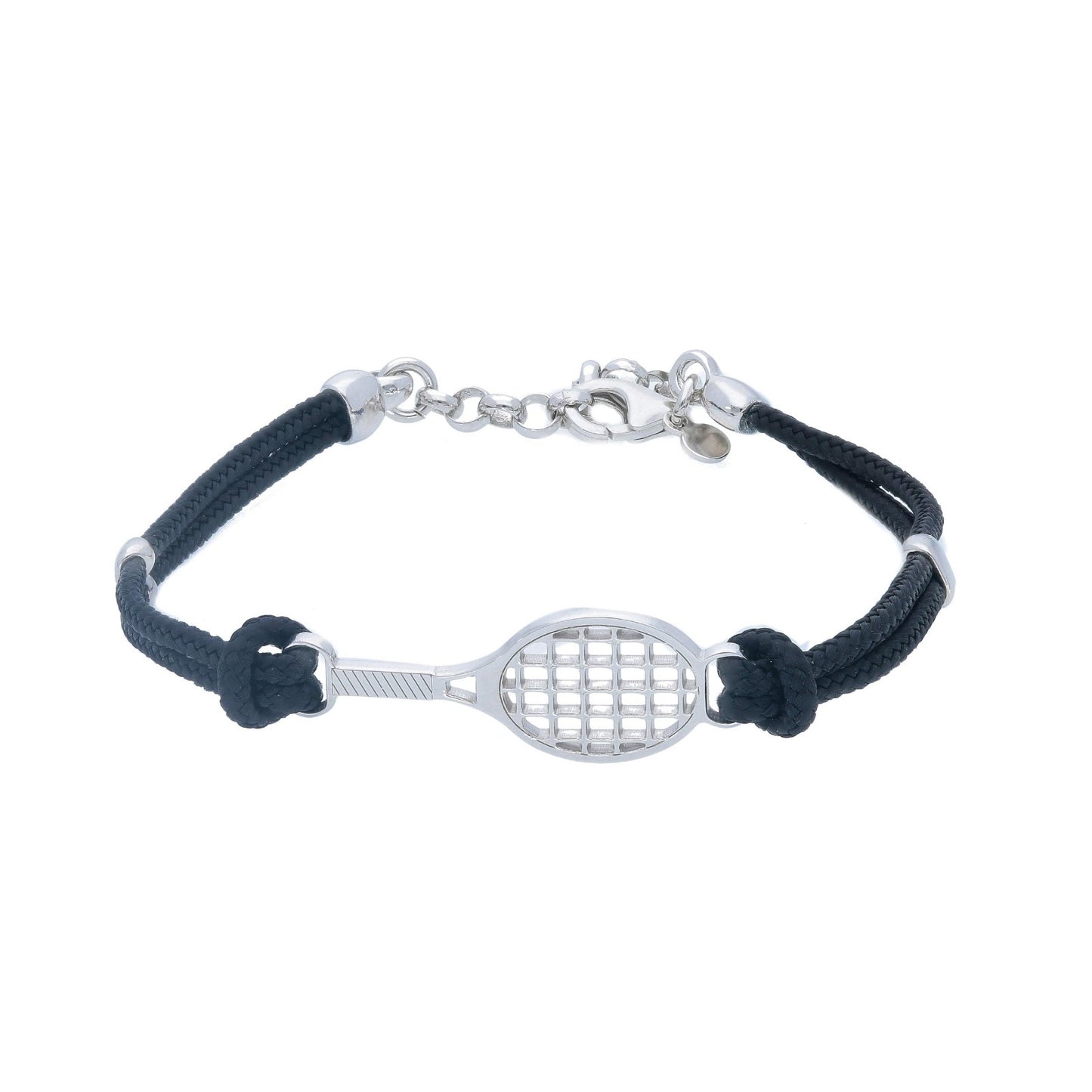 Bracciale in argento sagola nautica regolabile con racchetta da tennis