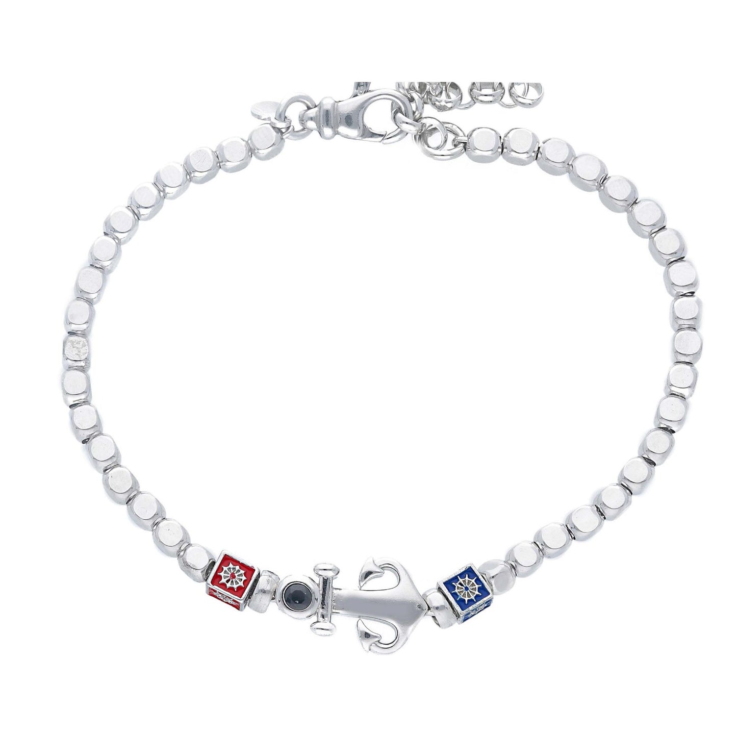 Bracciale in argento geometrico con ancora e smalti
