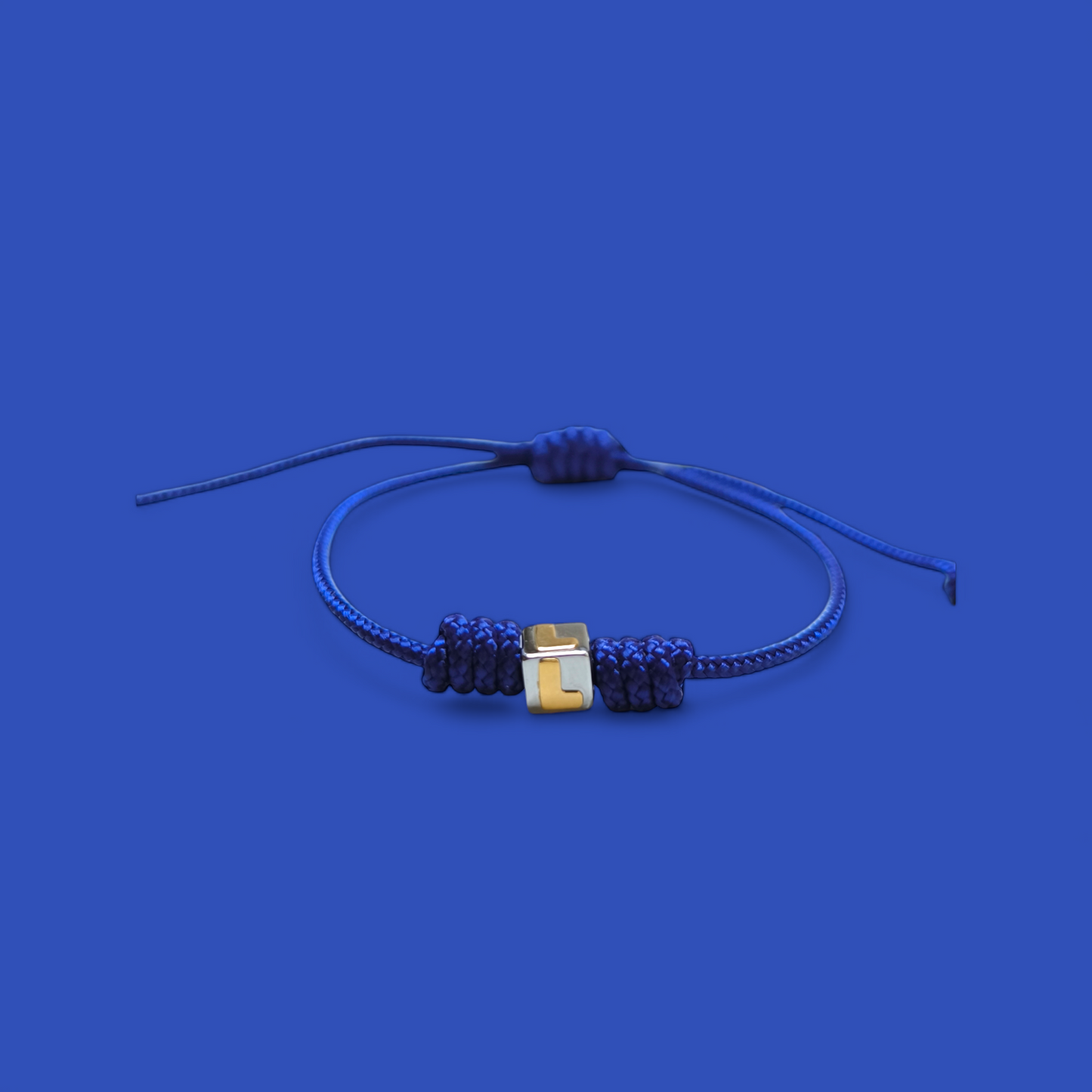 Dado in acciaio con lettera L in oro 18kt, giallo