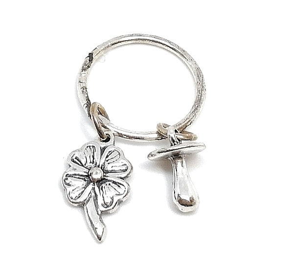 Ciondolo Argento - Anello con quadrifoglio e ciuccio