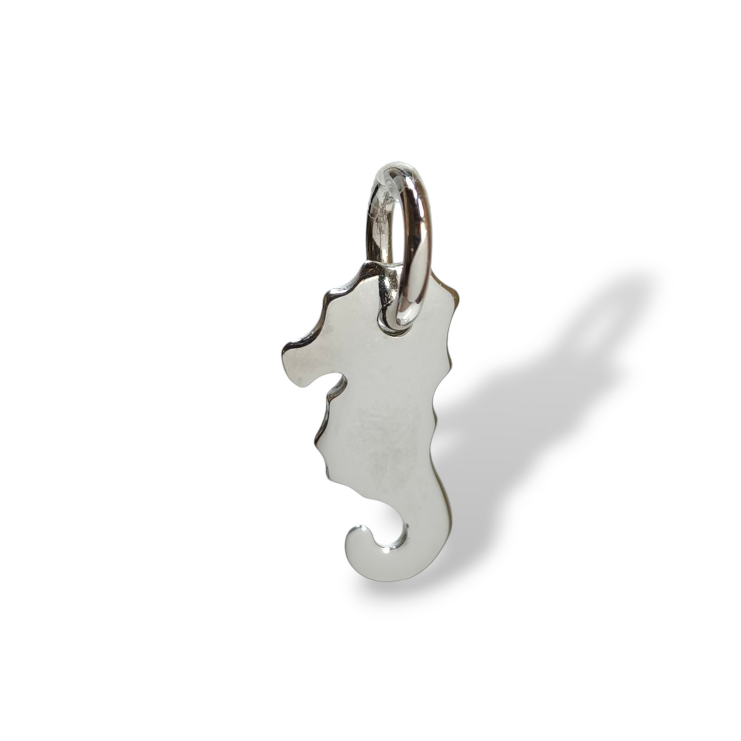 Scopri il nostro delizioso ciondolo in oro bianco 18kt a forma di cavalluccio marino, un gioiello da collezione unico nel suo genere! Tuffati nelle acque profonde della creatività, indossalo e sii sempre riconducibile al mondo sottomarino. Ehi, non dimenticare di raccontare a tutti la tua nuova avventura!