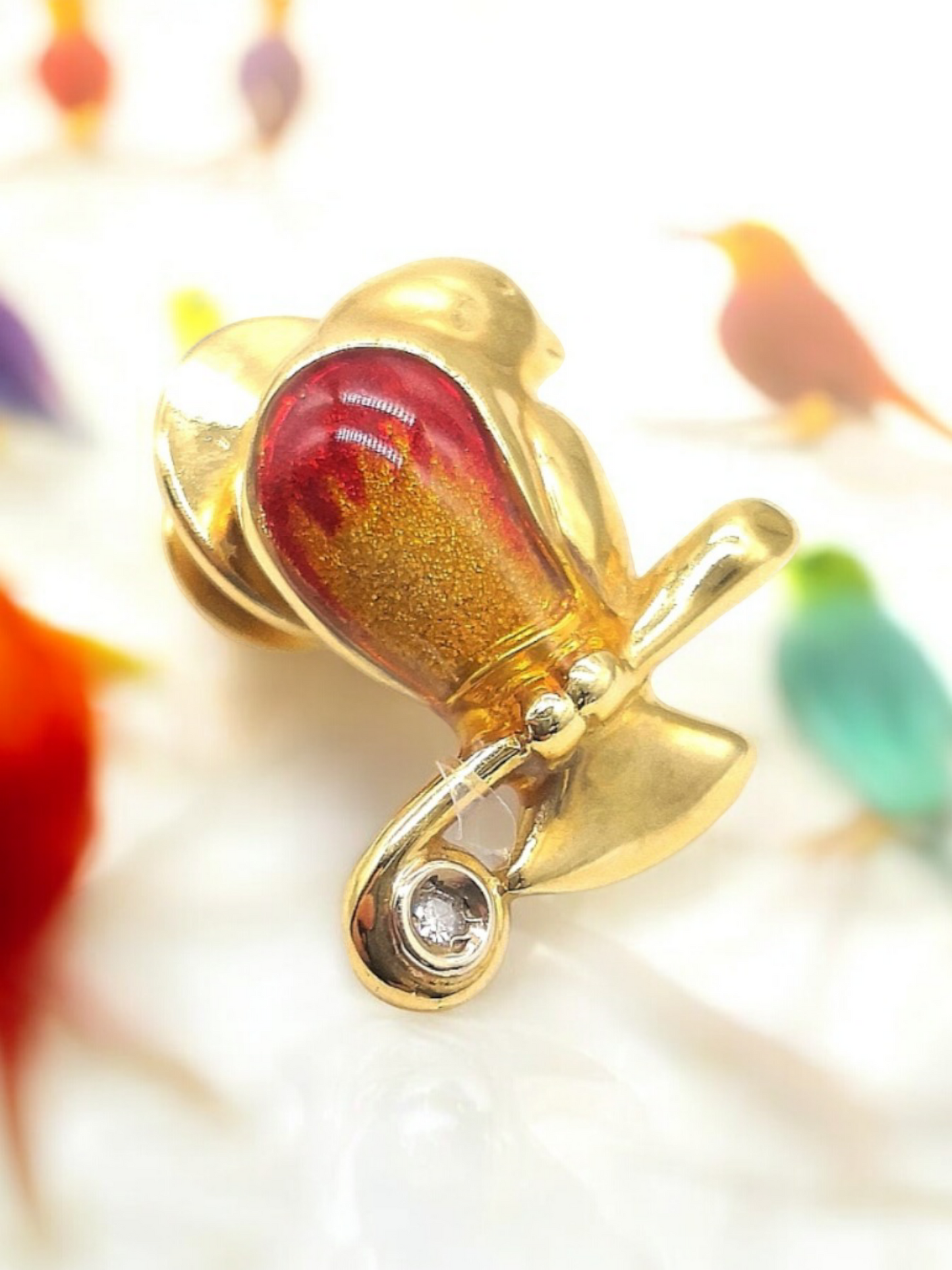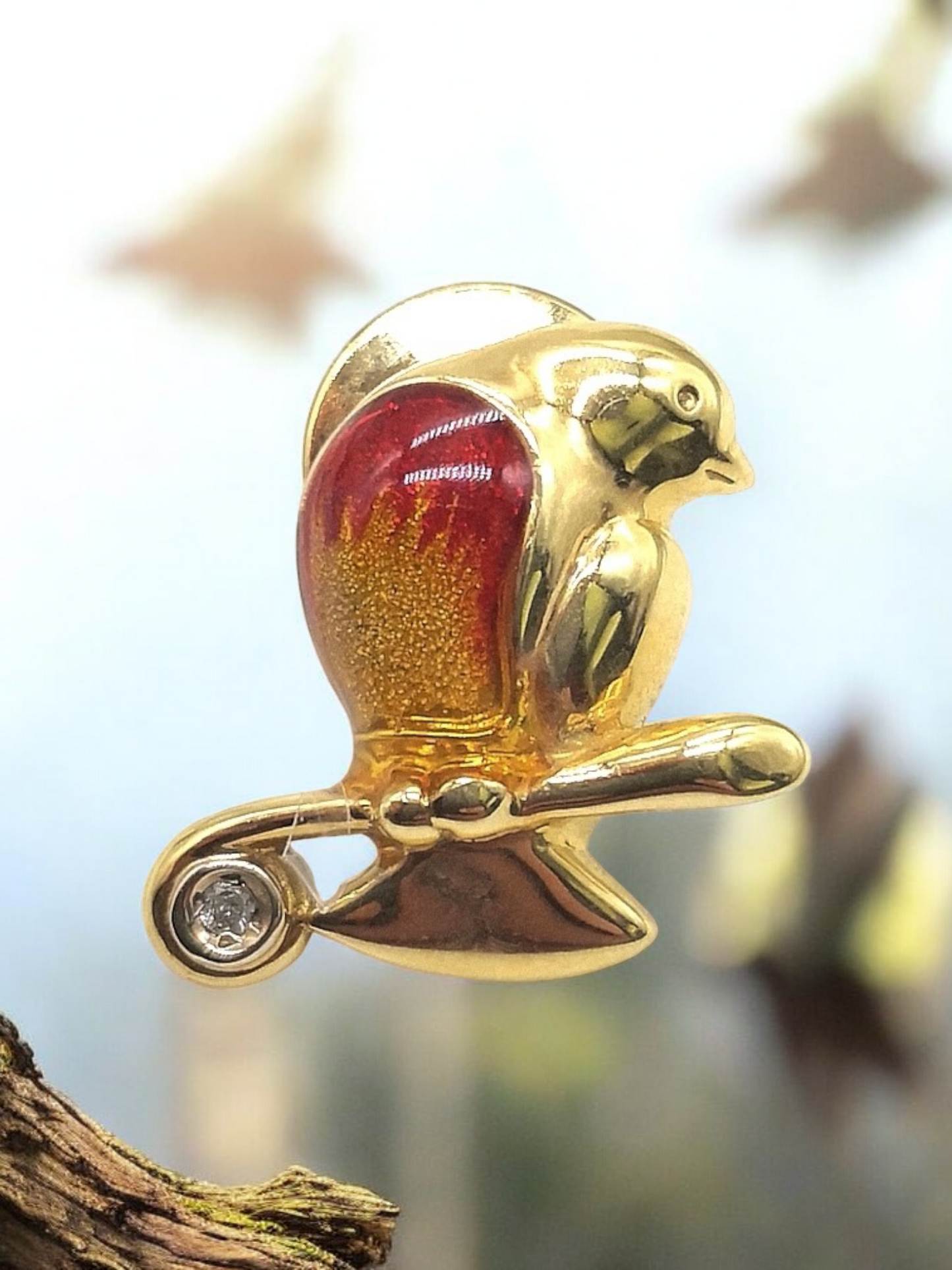 Puntale da giacca pettirosso materiale oro 18kt, giallo
