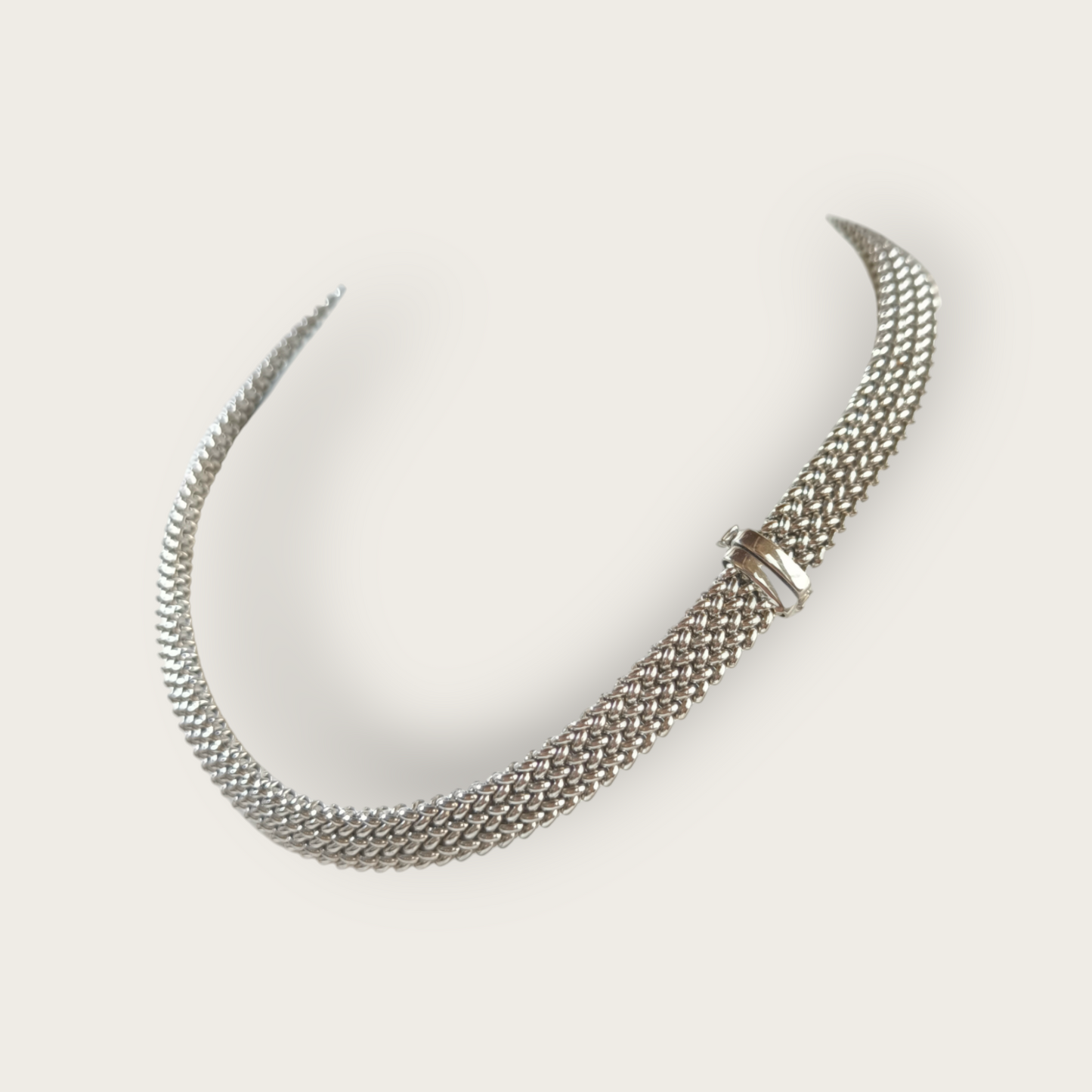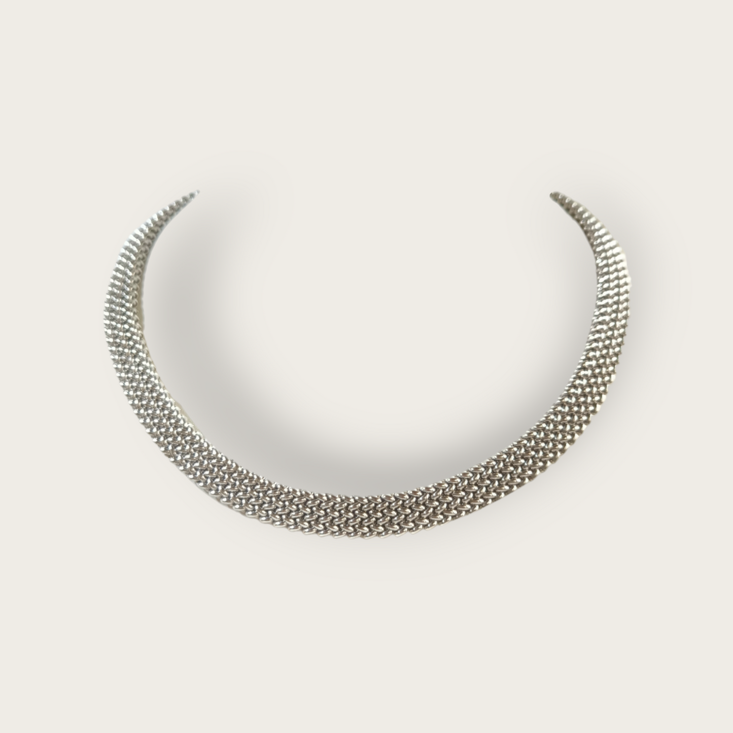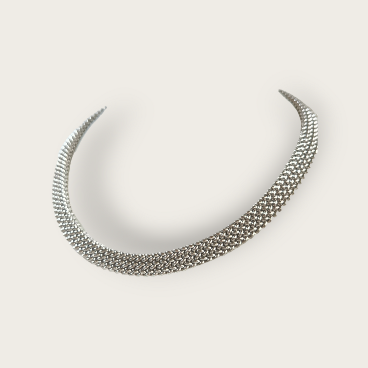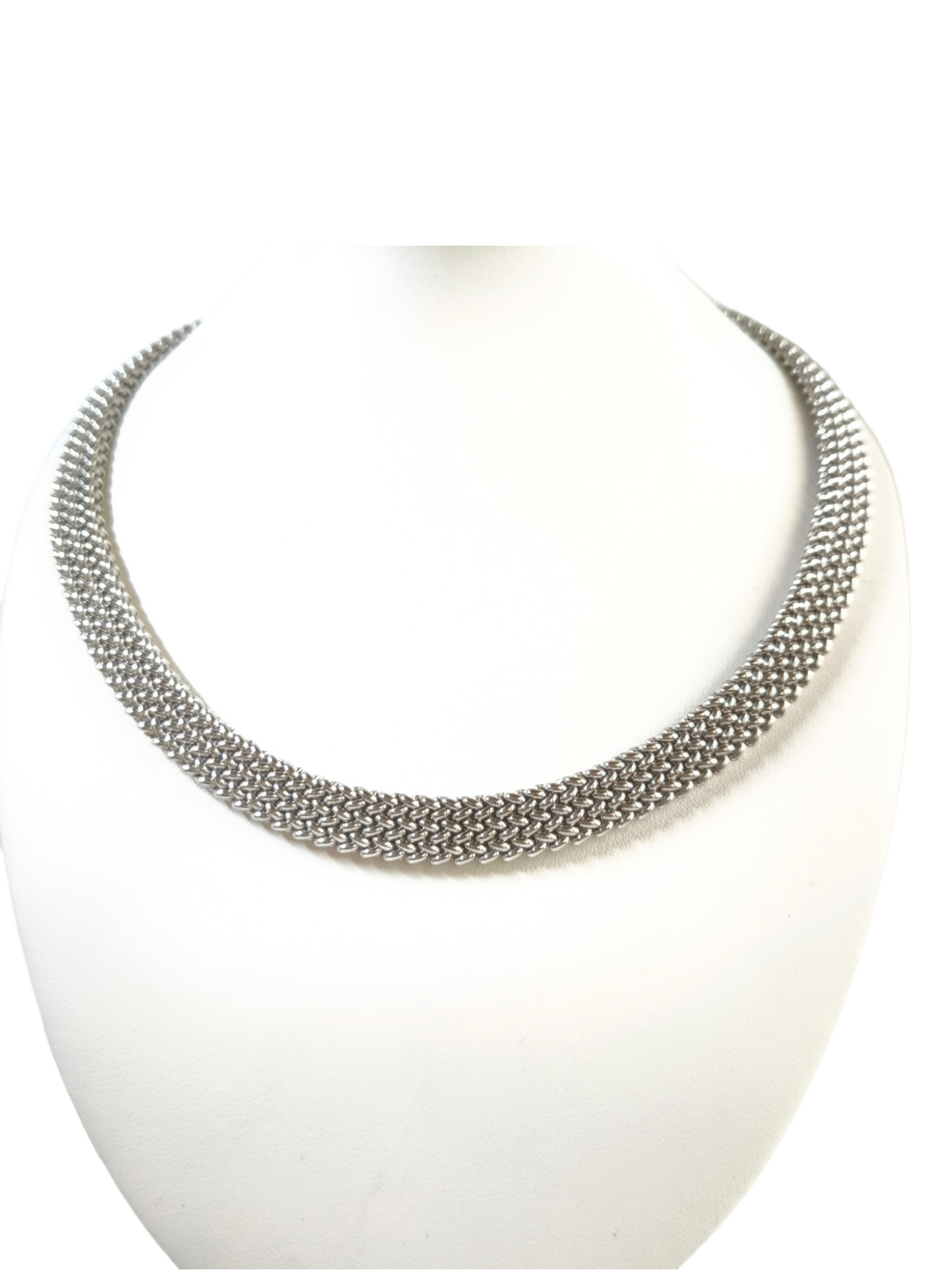 Questo girocollo semirigido in argento di Eclat presenta una maglia chicco, perfetta per uno stile elegante e sofisticato. Realizzato con argento di alta qualità, questo girocollo è resistente e durevole, garantendo un tocco di classe al tuo look. Aggiungi un tocco di eleganza al tuo outfit con questo girocollo chicco in argento.