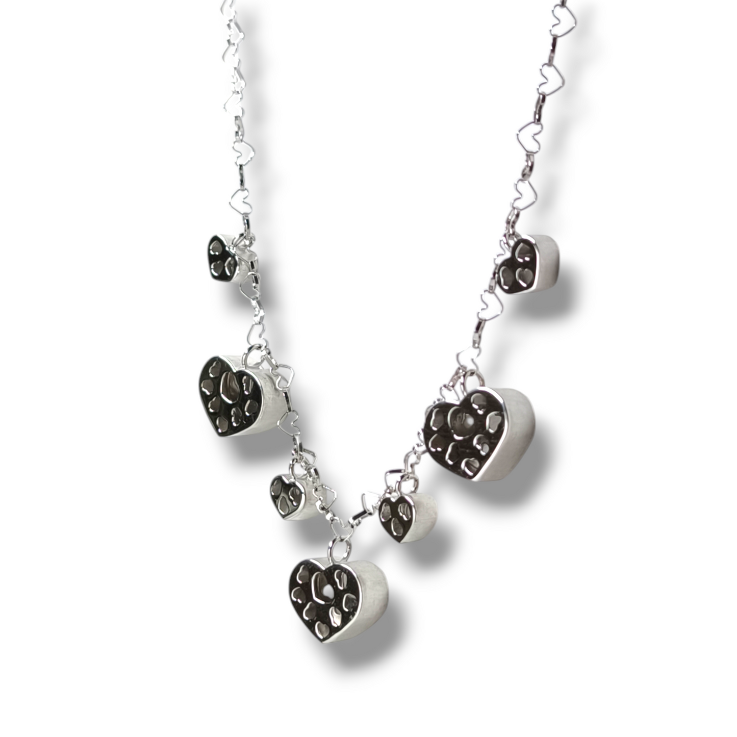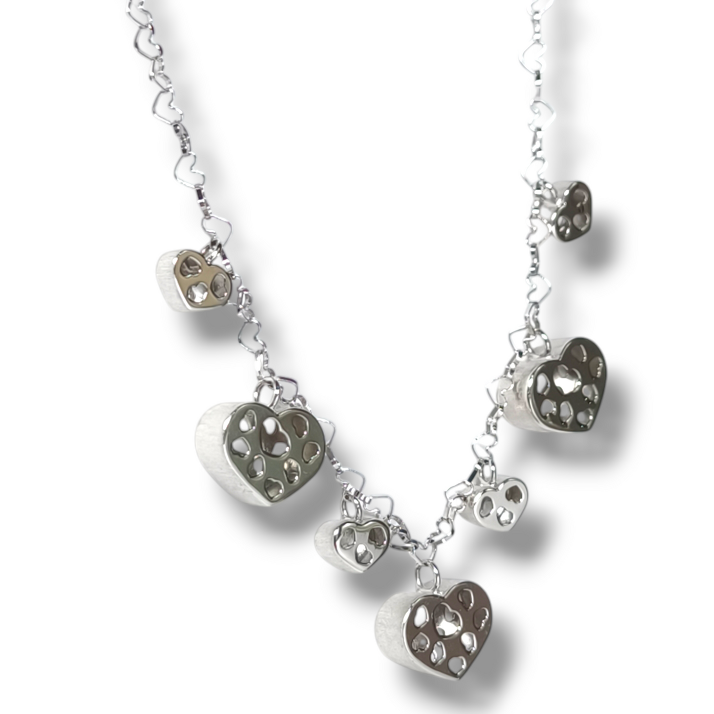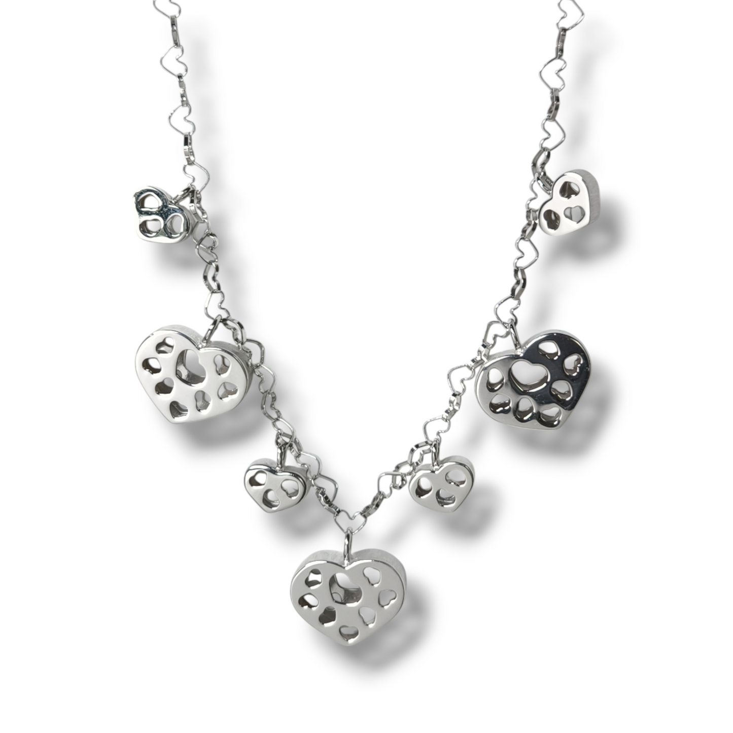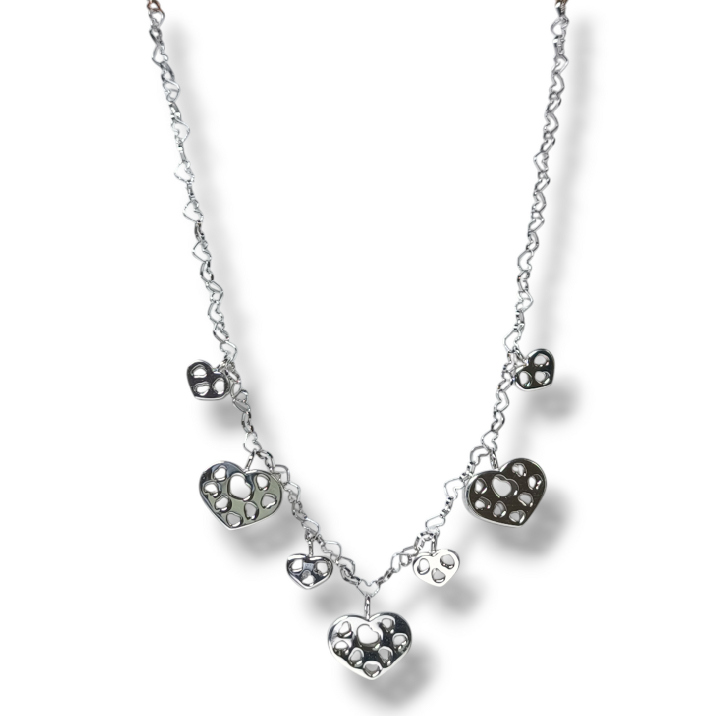 Girocollo in oro bianco cuori lavorati