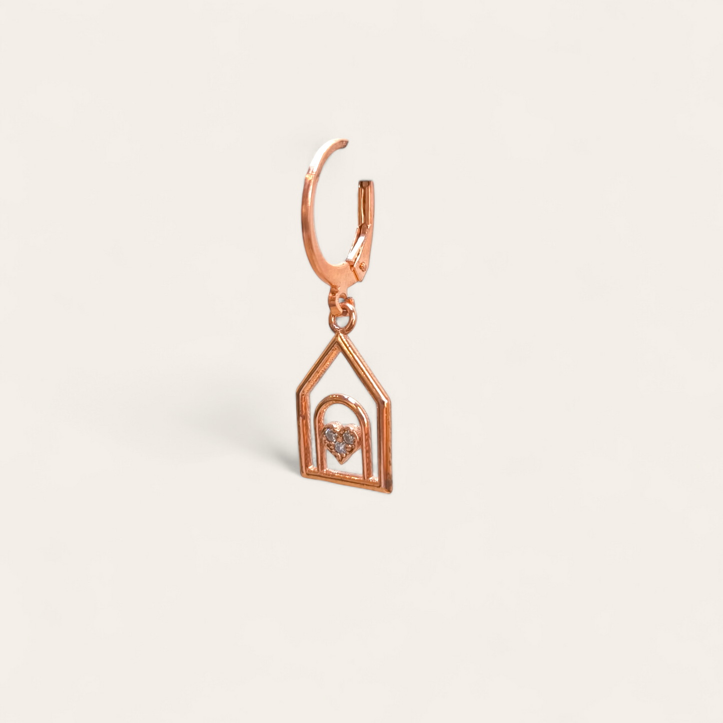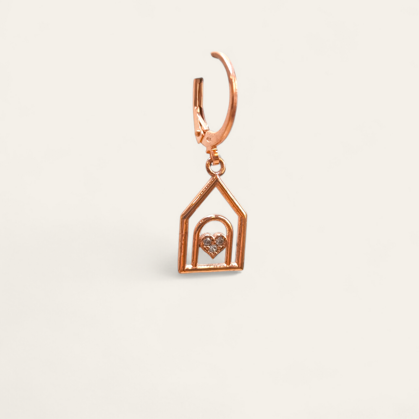 Mono orecchino in argento casetta cuore pavé di zirconi