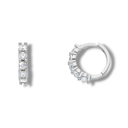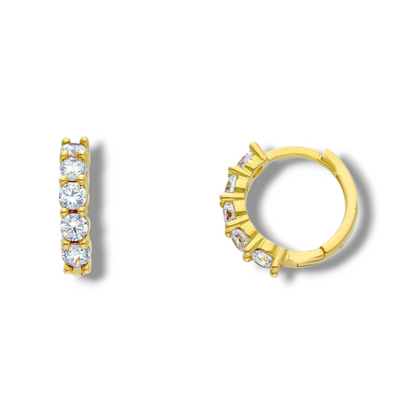 Orecchini in oro a scattino con zirconi diametro 1,2 cm
