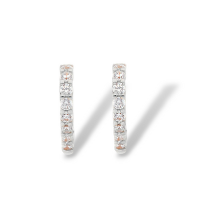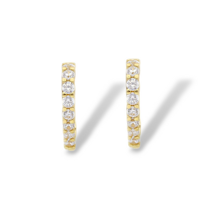 Orecchini in oro a scattino a cuore con zirconi diametro 1,3 cm