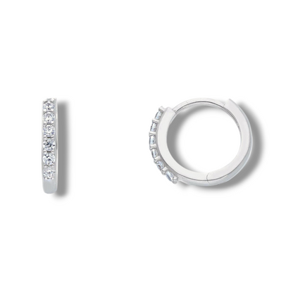 Orecchini in oro a scattino con zirconi diametro 1 cm