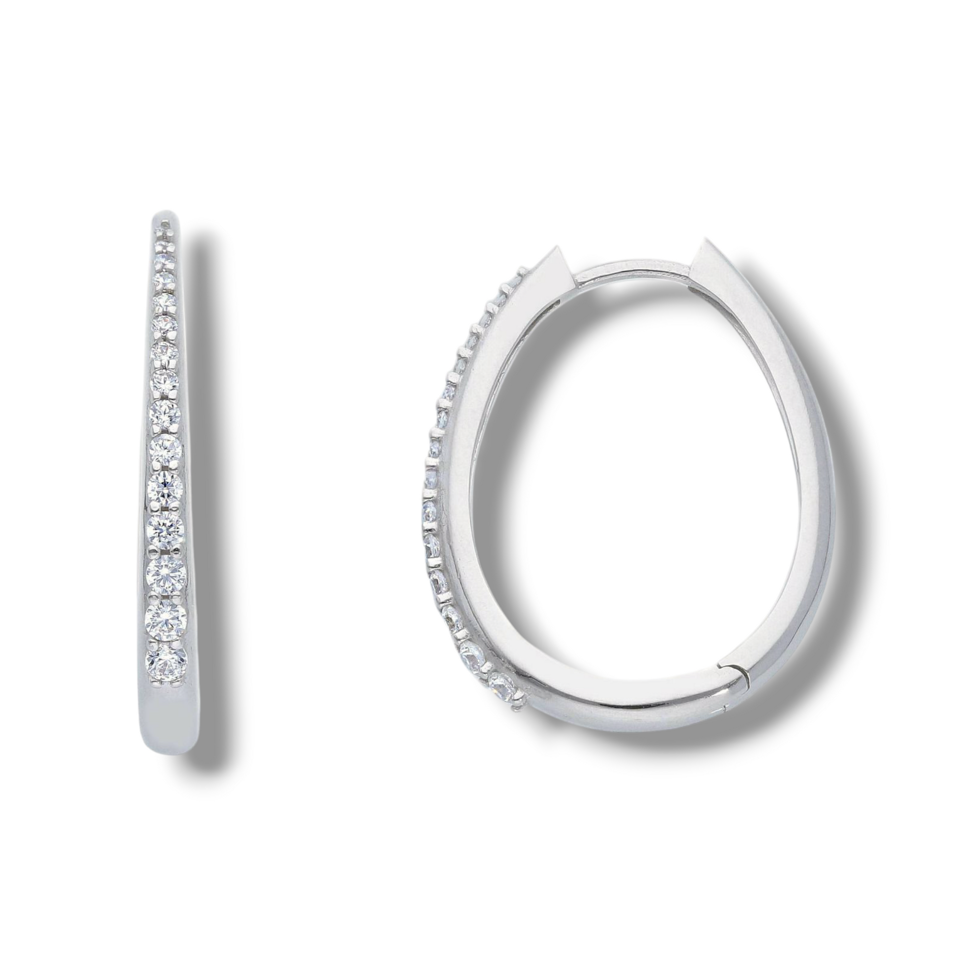 Orecchini in oro a scattino ovali medi 2,5 cm con zirconi a pavè