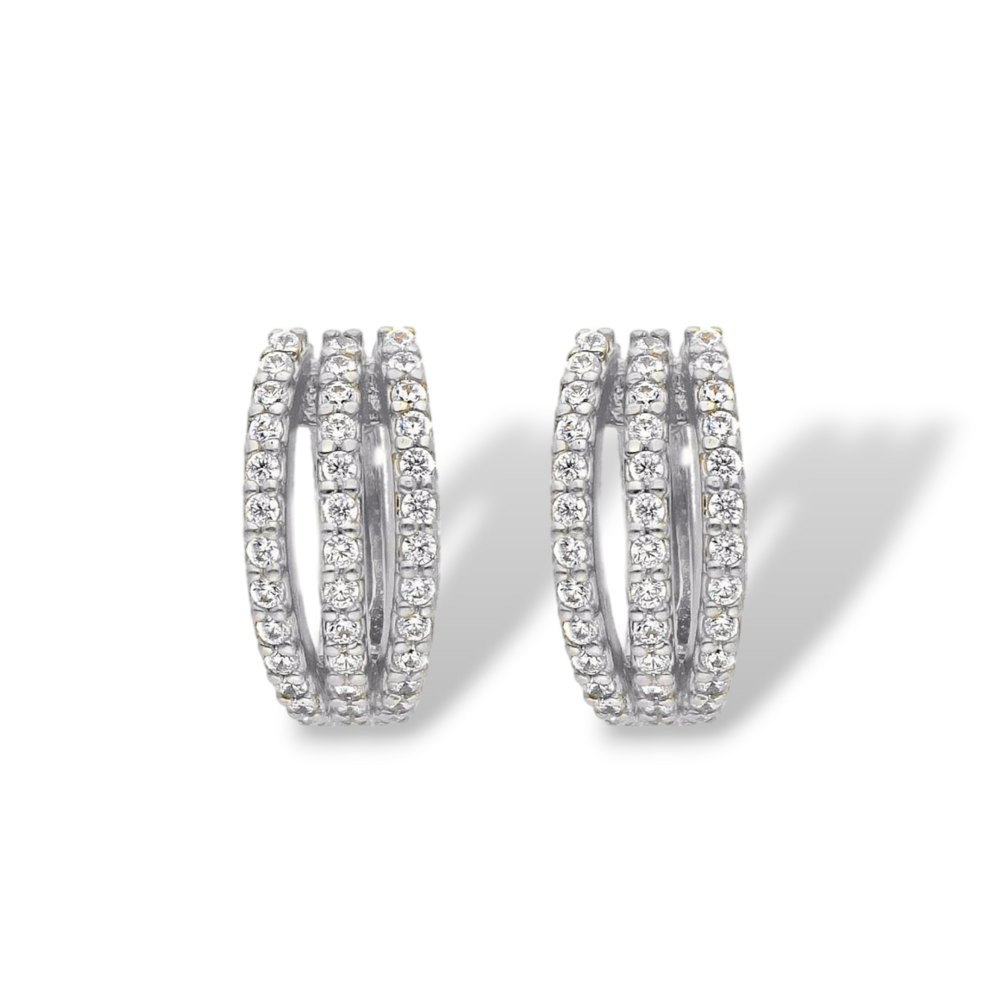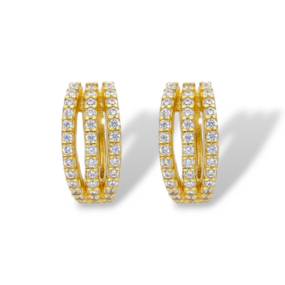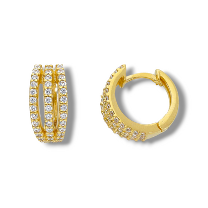Orecchini in oro a scattino tondi con zirconi diametro 1,3 cm