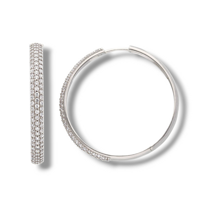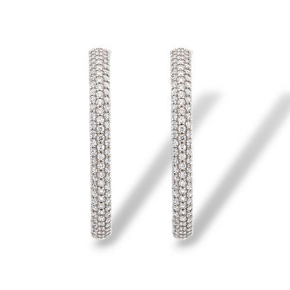 Orecchini in oro a scattino tondi grandi diametro 3 cm con zirconi a pavè