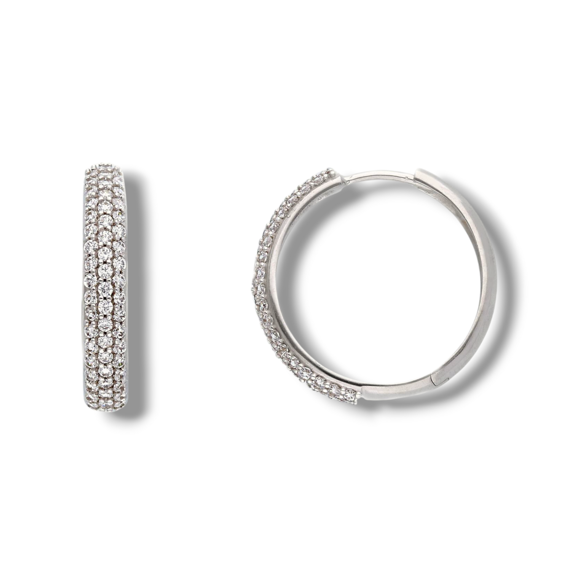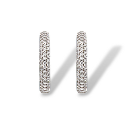 Orecchini in oro a scattino tondi medi diametro 2 cm con zirconi a pavè