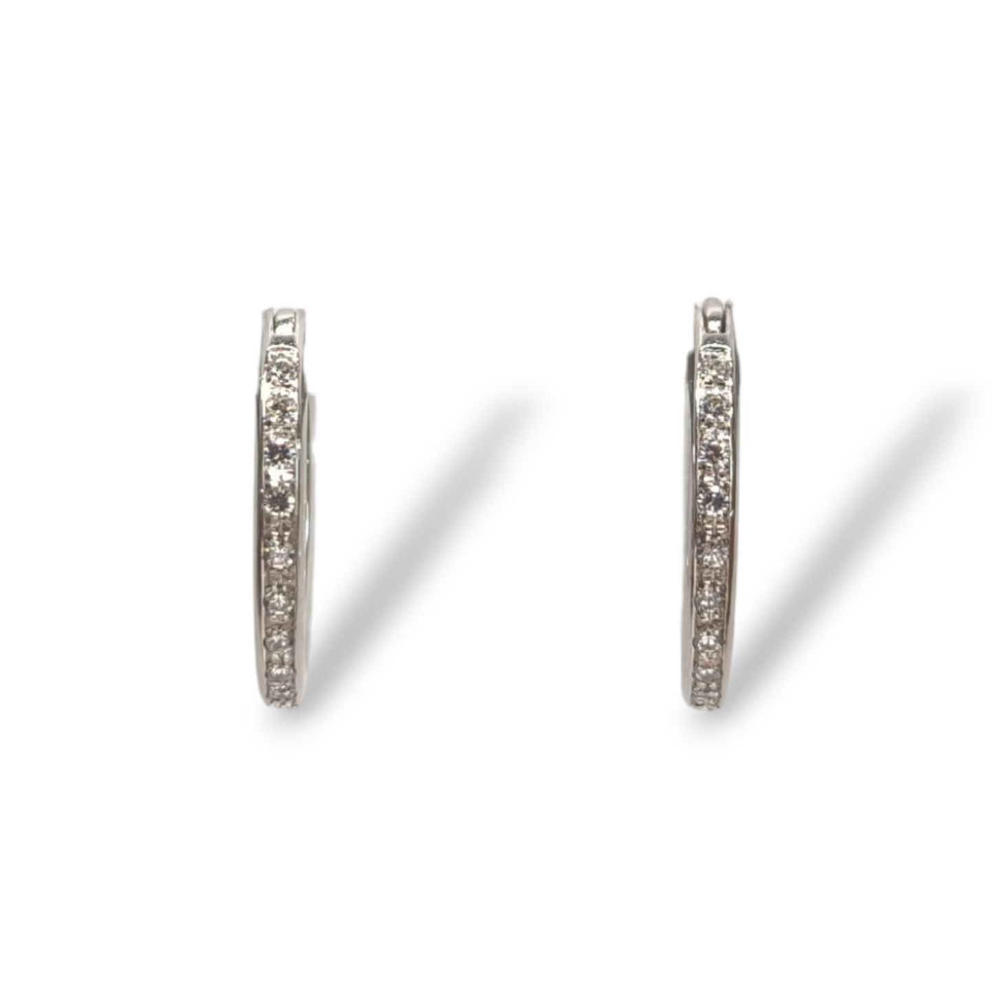 Orecchini in oro cerchio con zirconi diam 1,7 cm