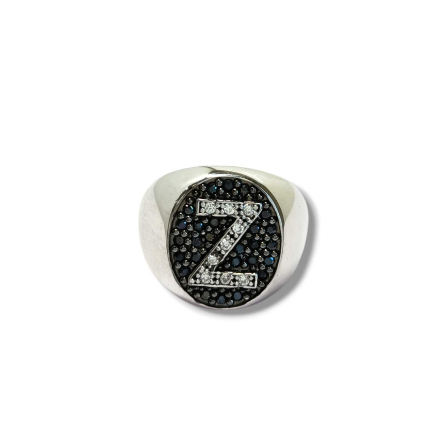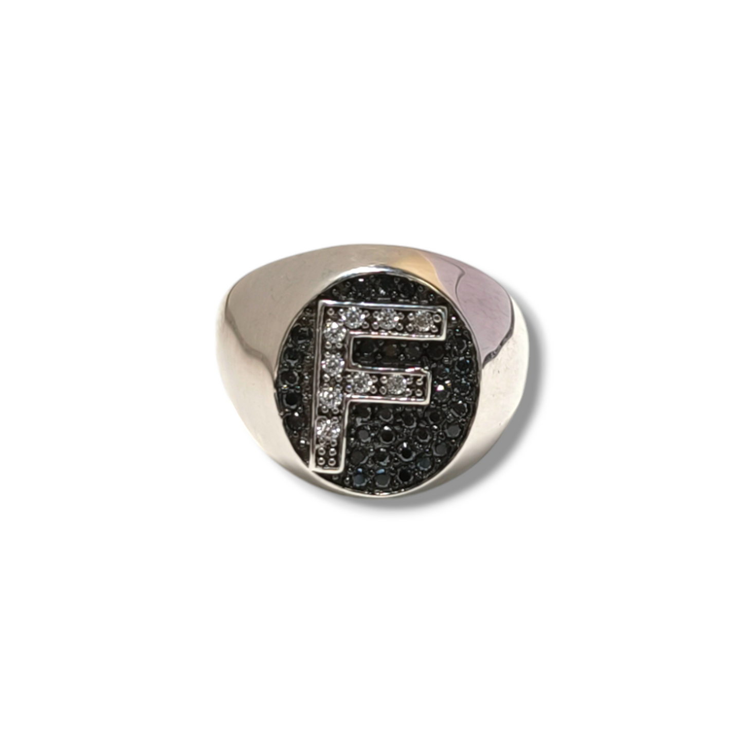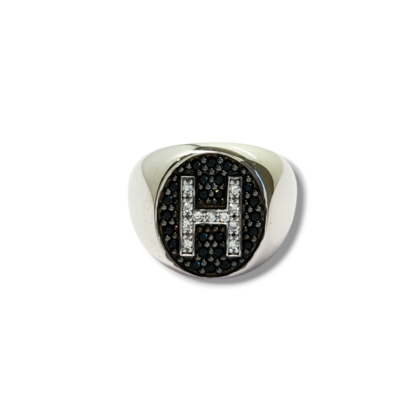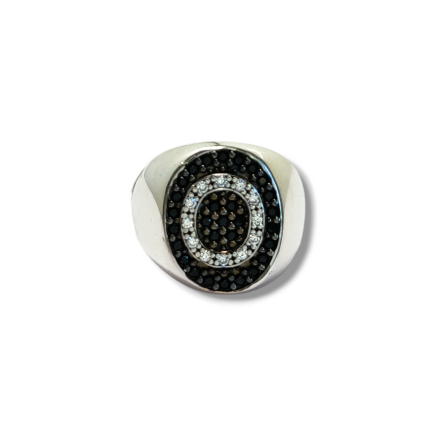 Lettera in zirconi bianchi a pavé, e contorno a pavé di zirconi neri