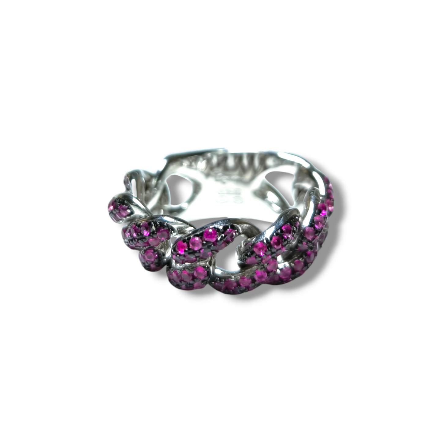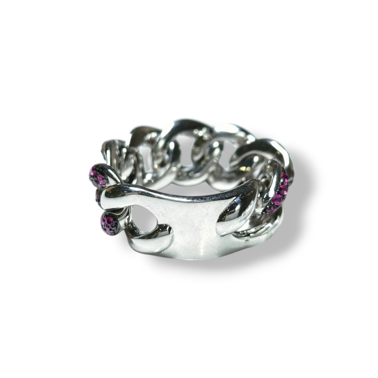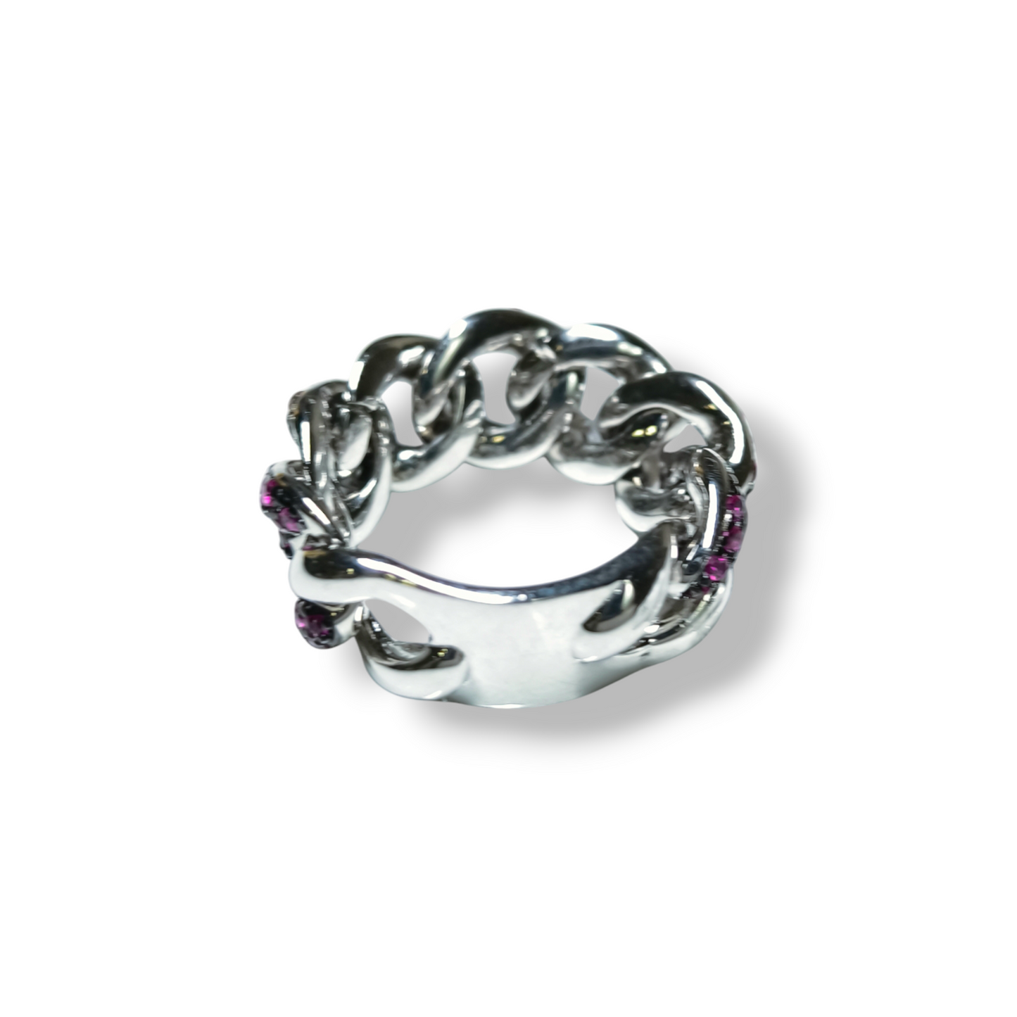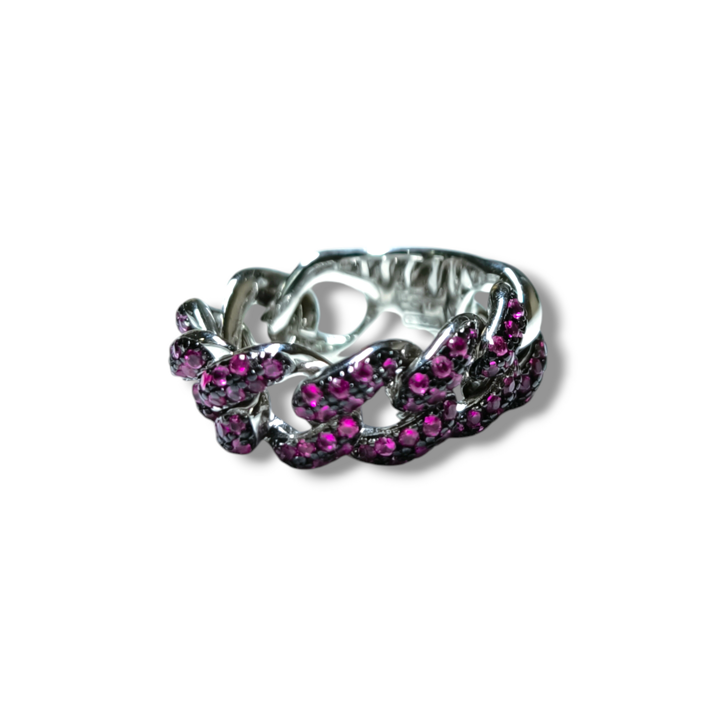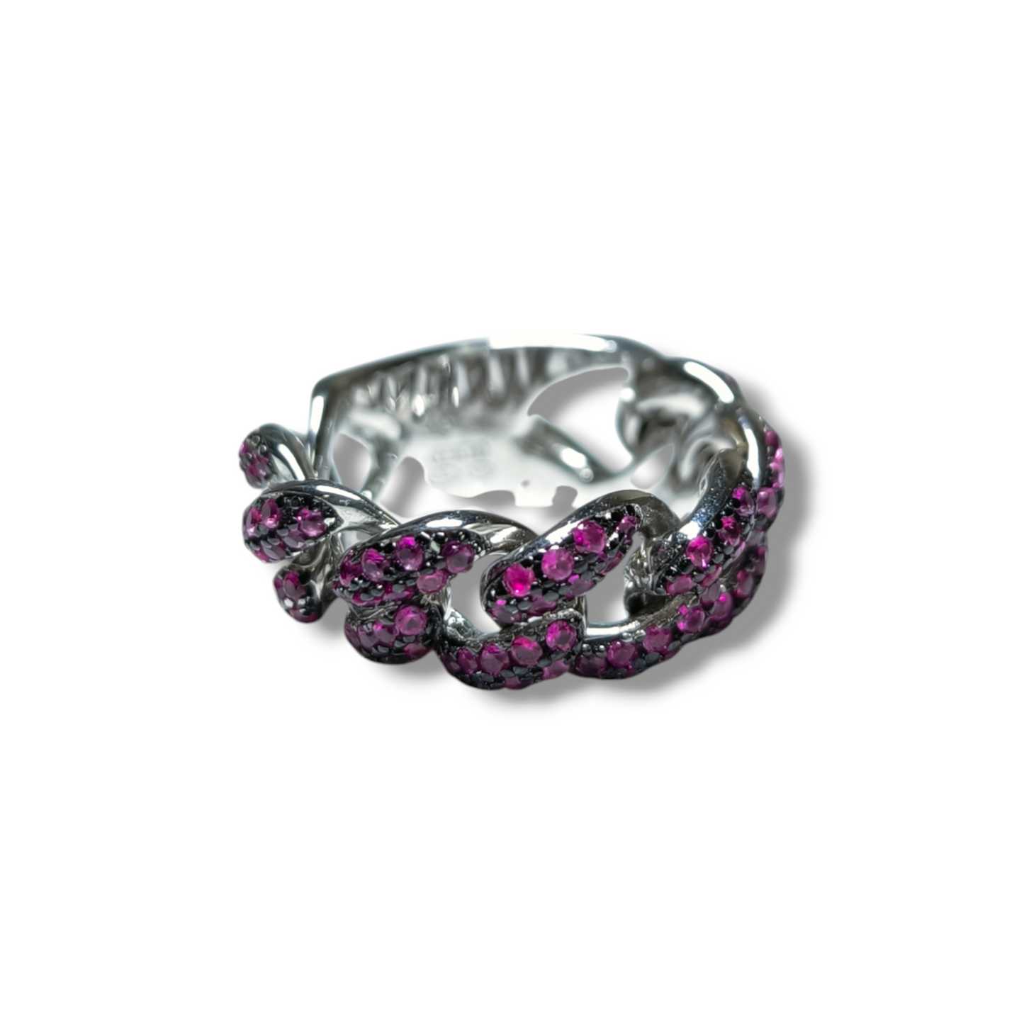 con zirconi rossi/bordeaux incassati a griffe brunite