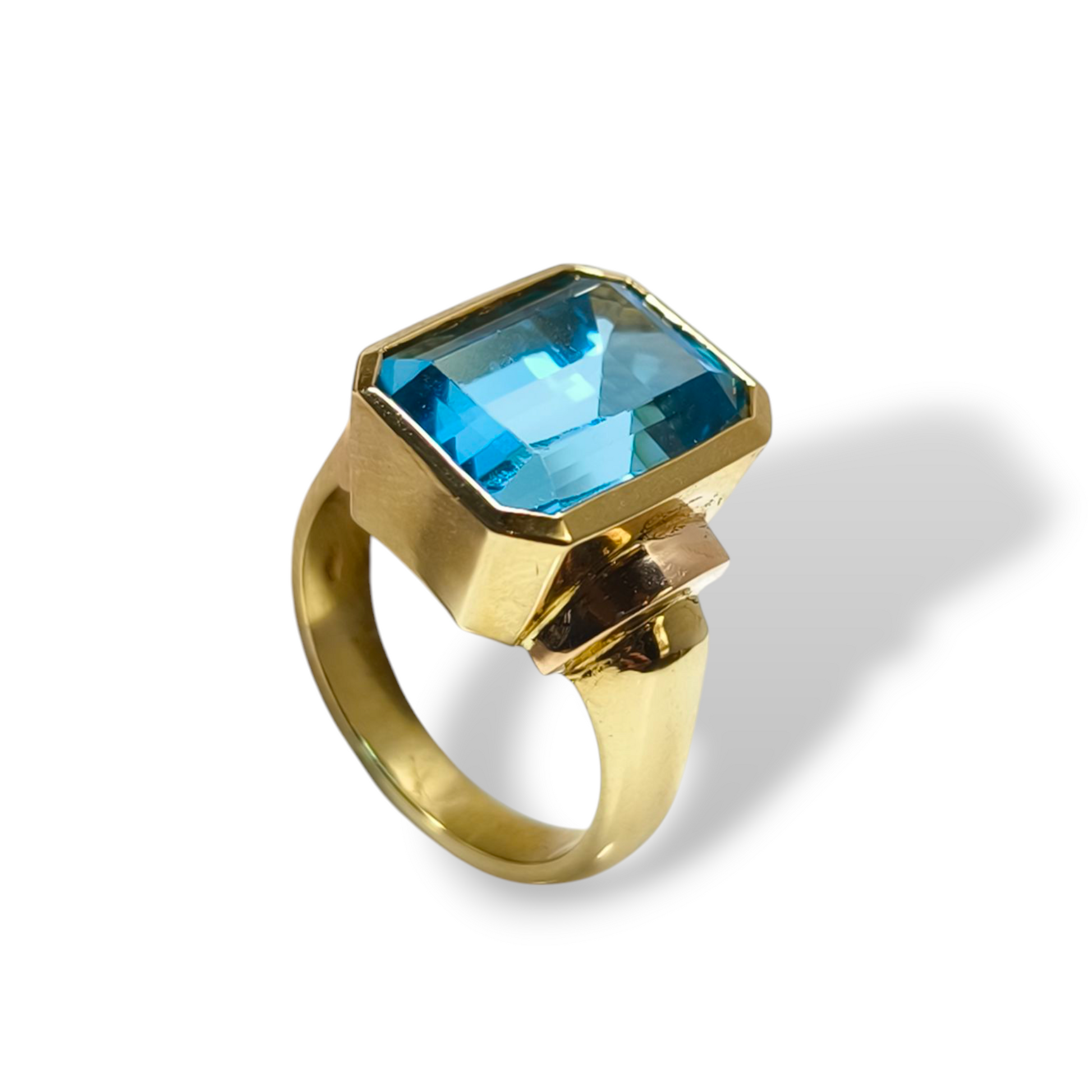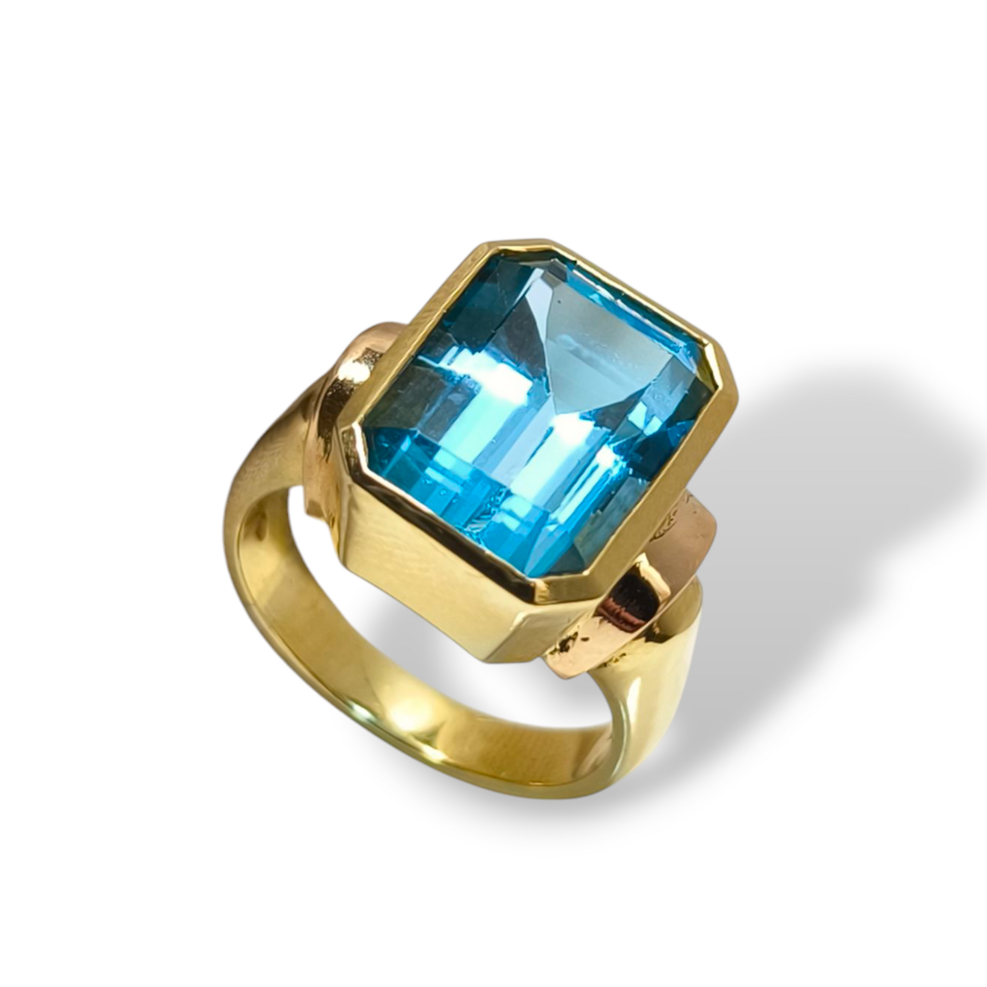 pietra incassata a battuta, anello a fascia, montatura realizzata a mano
