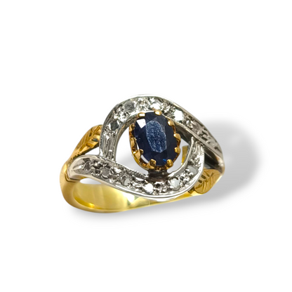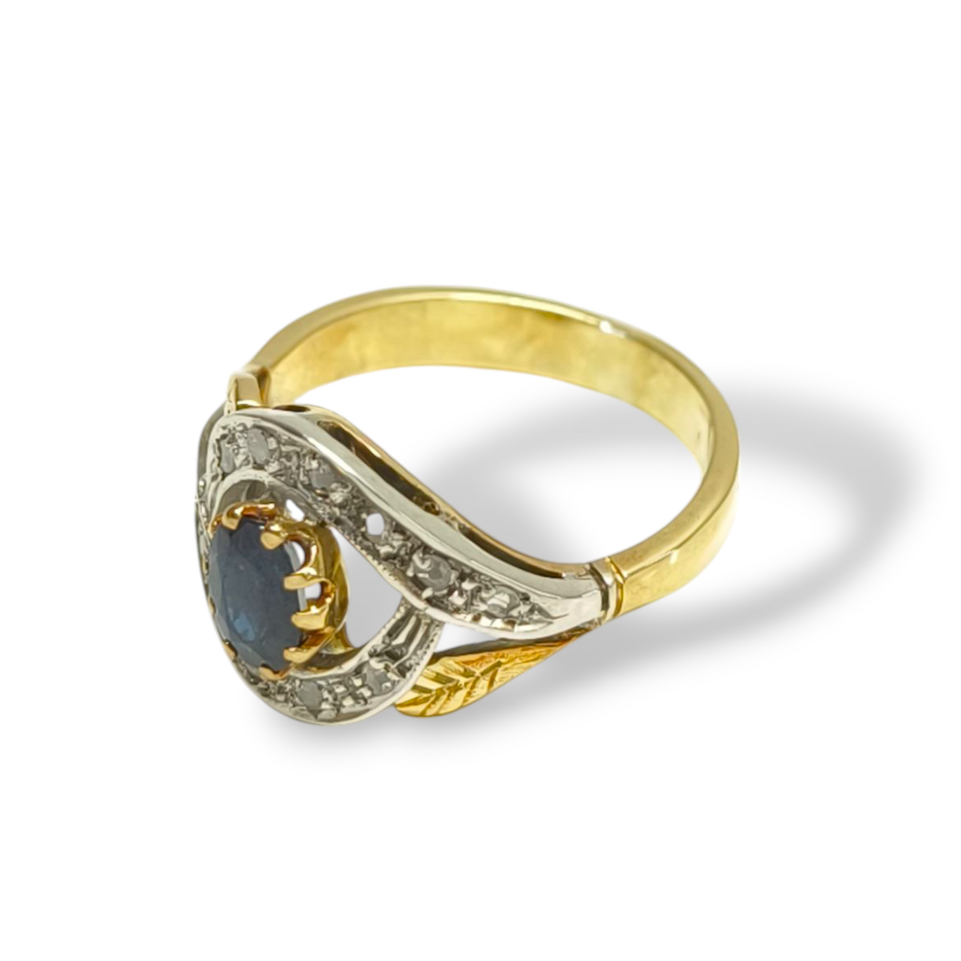 • mano di donna con indosso un anello in oro giallo con opale e diamanti
