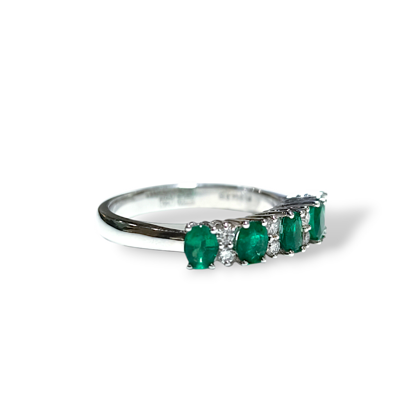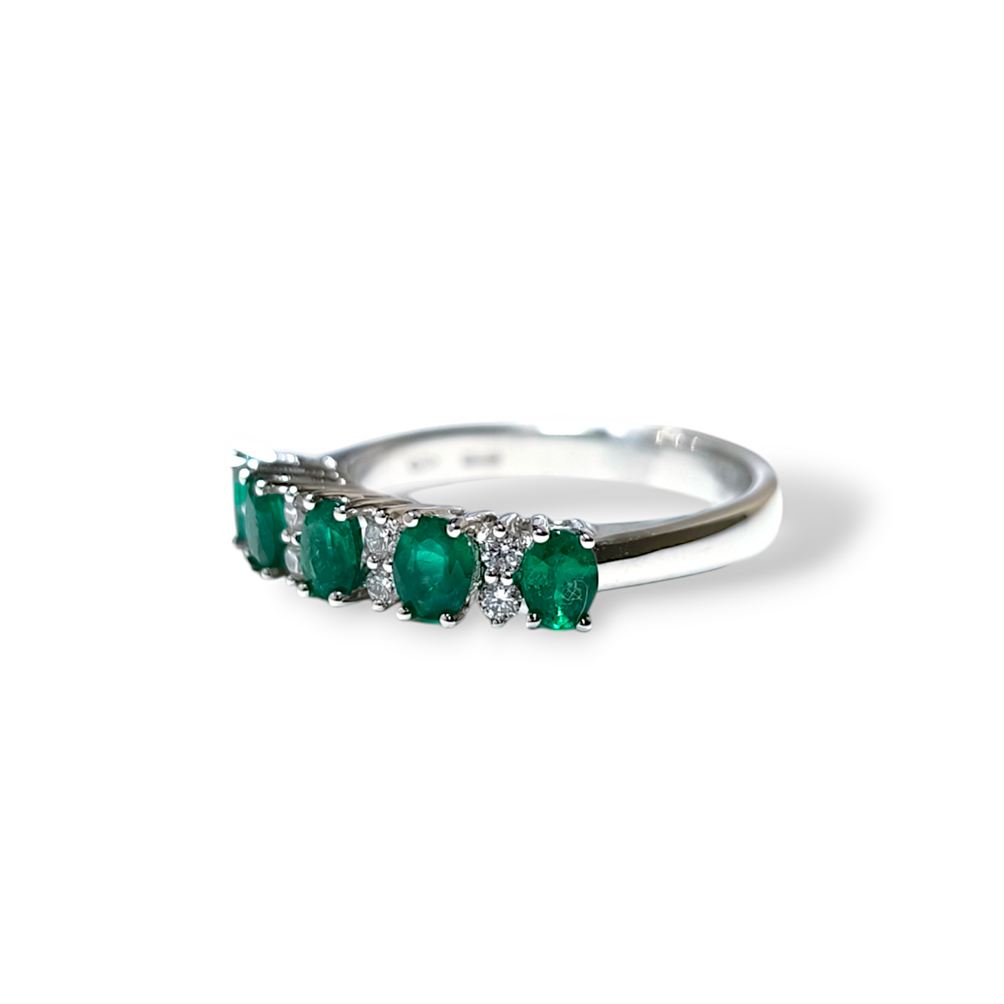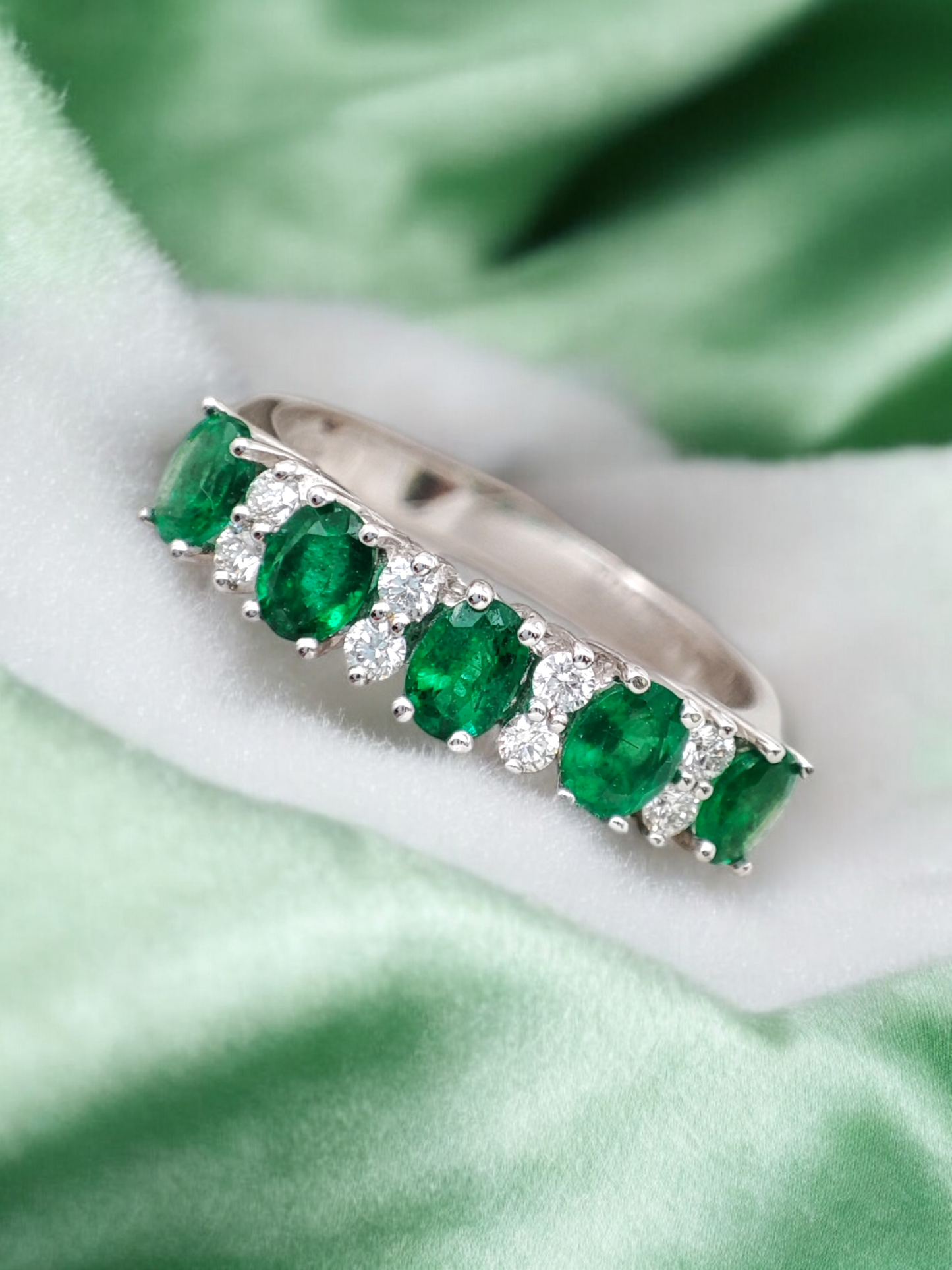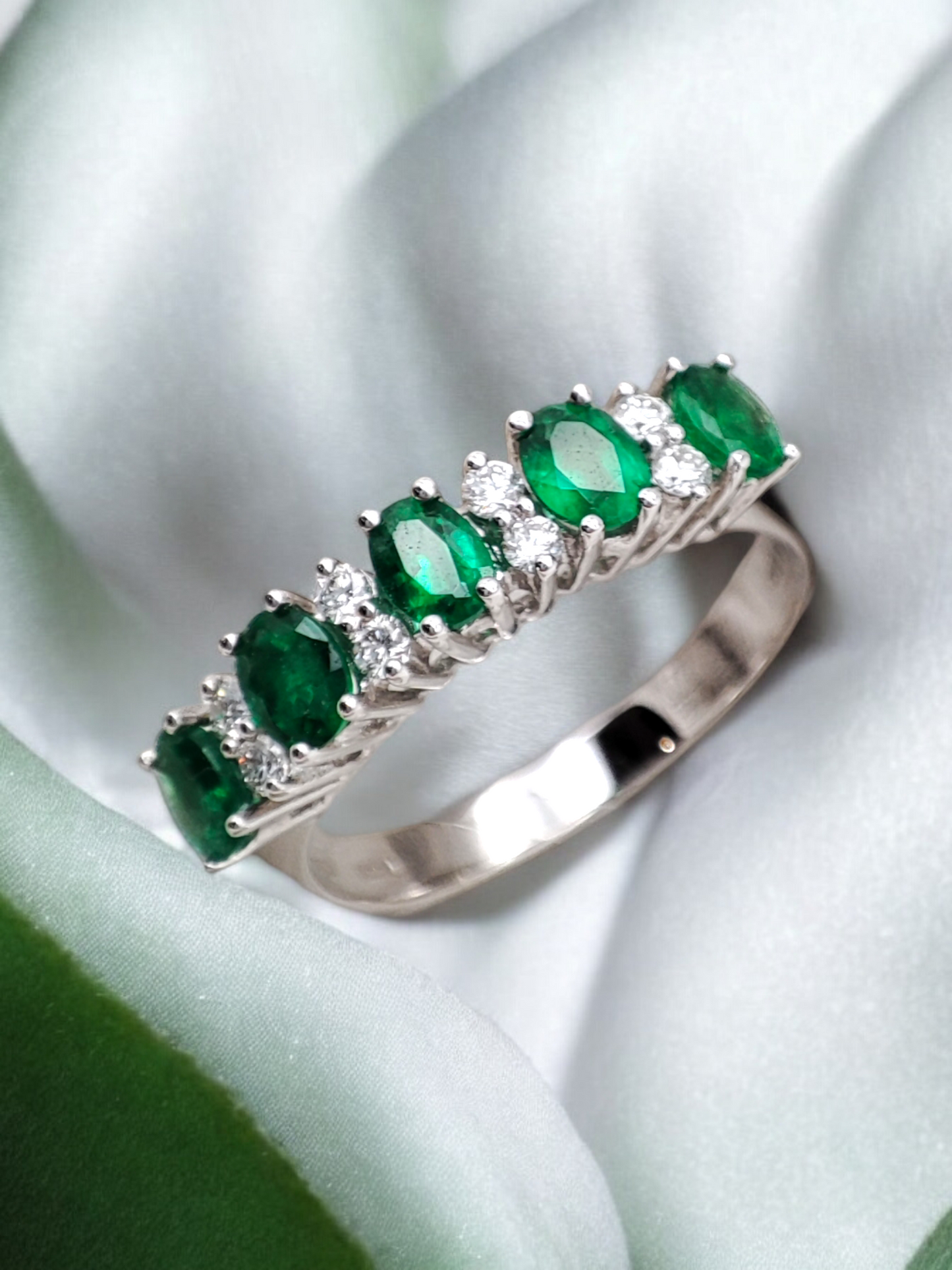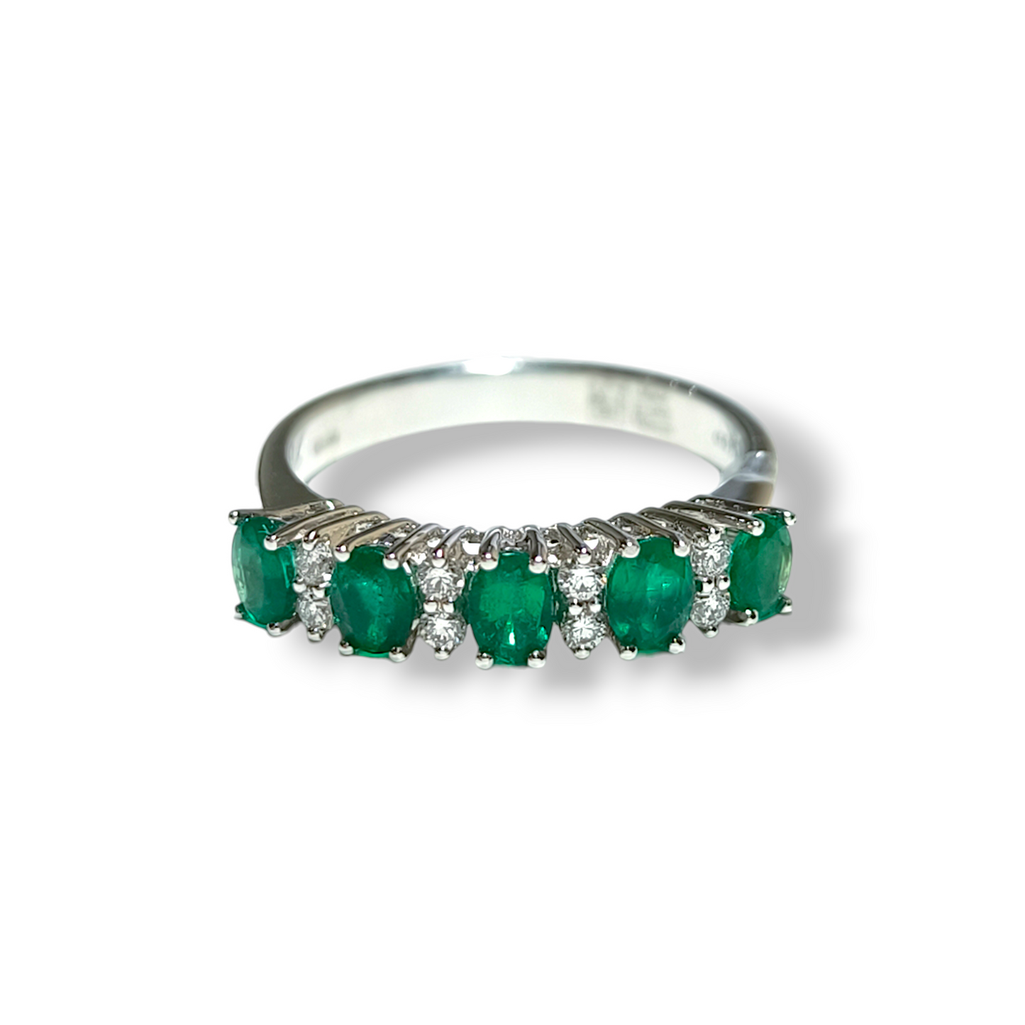 Anello in oro mezza fede con Smeraldi e Diamanti