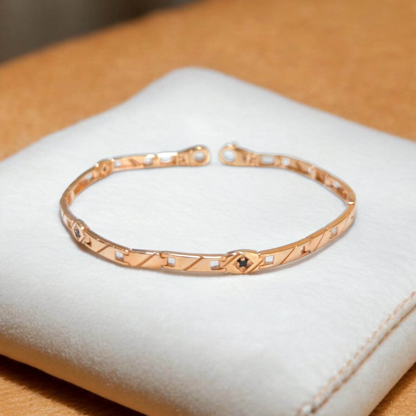 Bracciale in oro rosa maglia geometrica zirconi neri