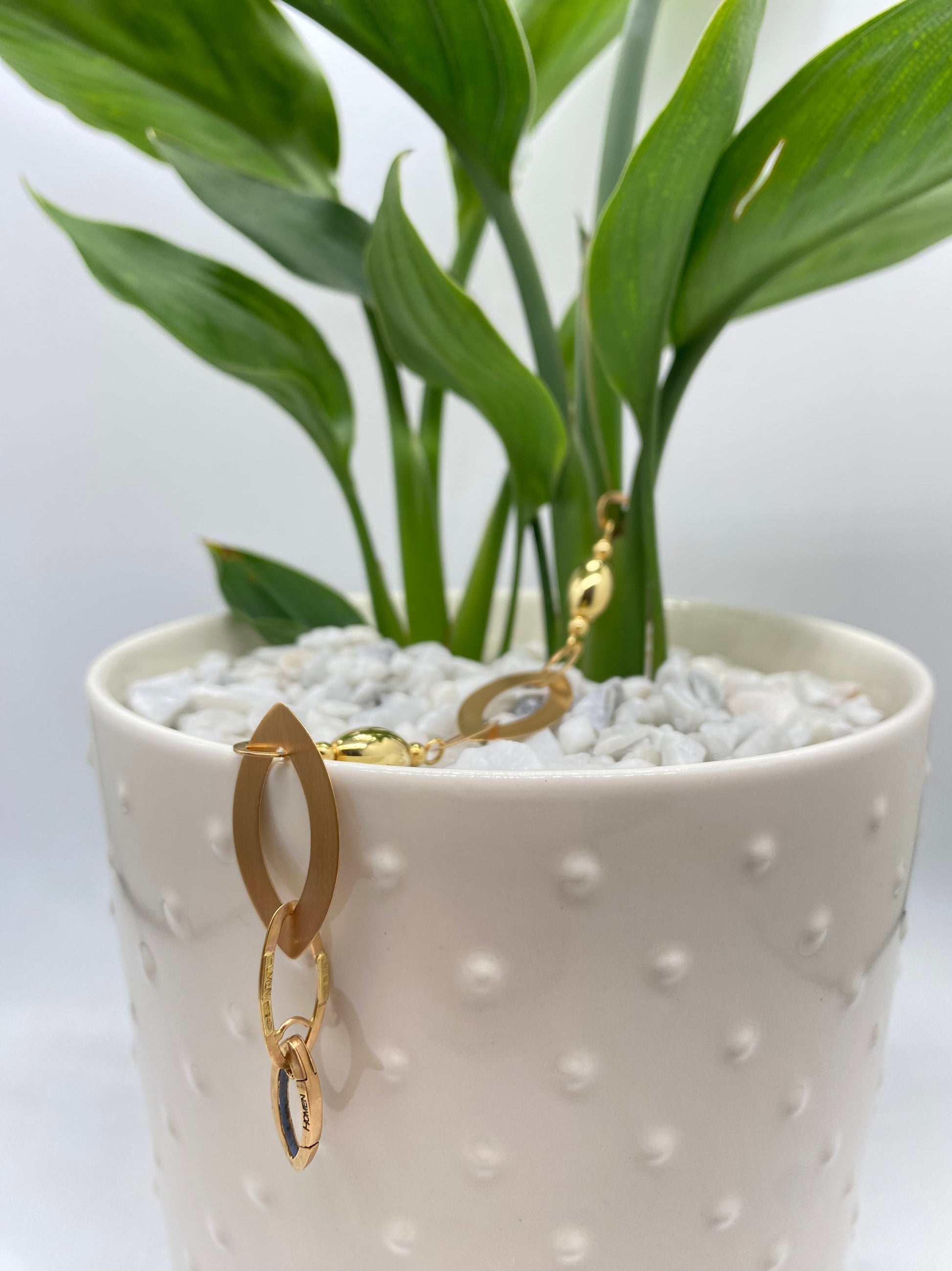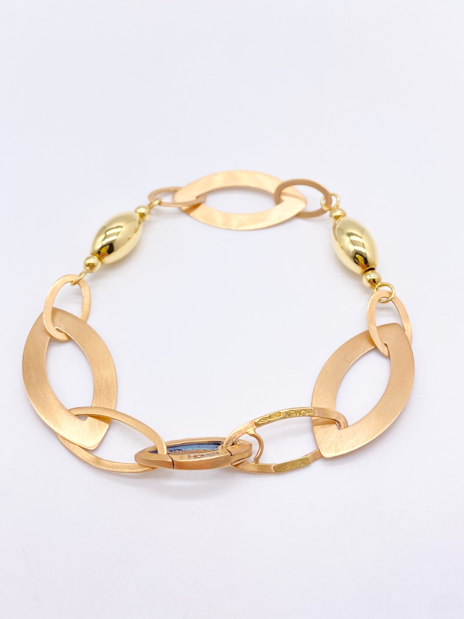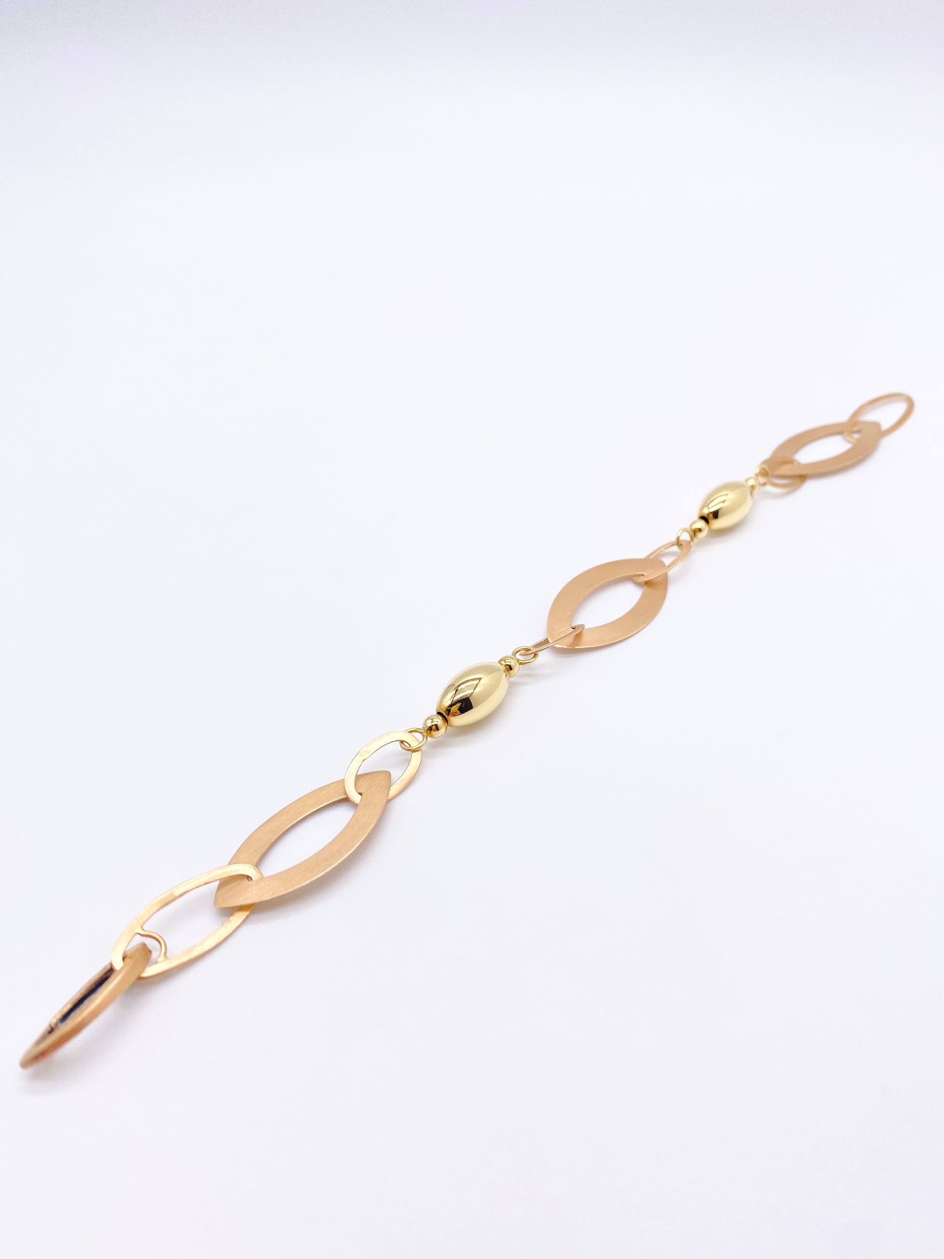 modello con ovali grandi e piccoli satinati in oro rosa alternati a bussolotti in oro giallo lucido