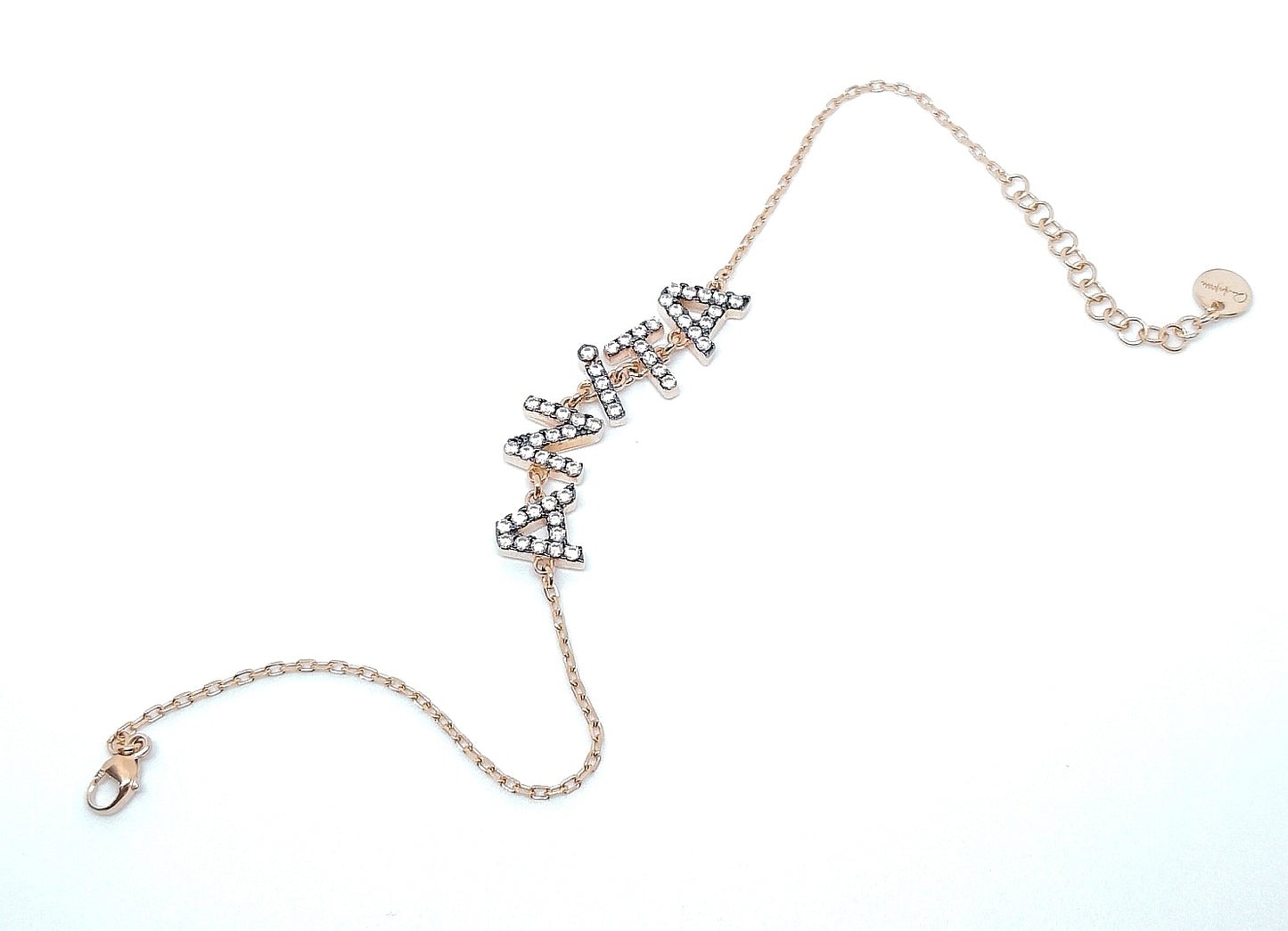 Un bracciale personalizzato con nome Anita in argento rosa e zirconi. Incanta con il tuo nome, illuminato dallo splendore dell'argento e dall'eleganza dei zirconi. Cattura l'attenzione con questo bracciale unico e chic, perfetto per ogni occasione.