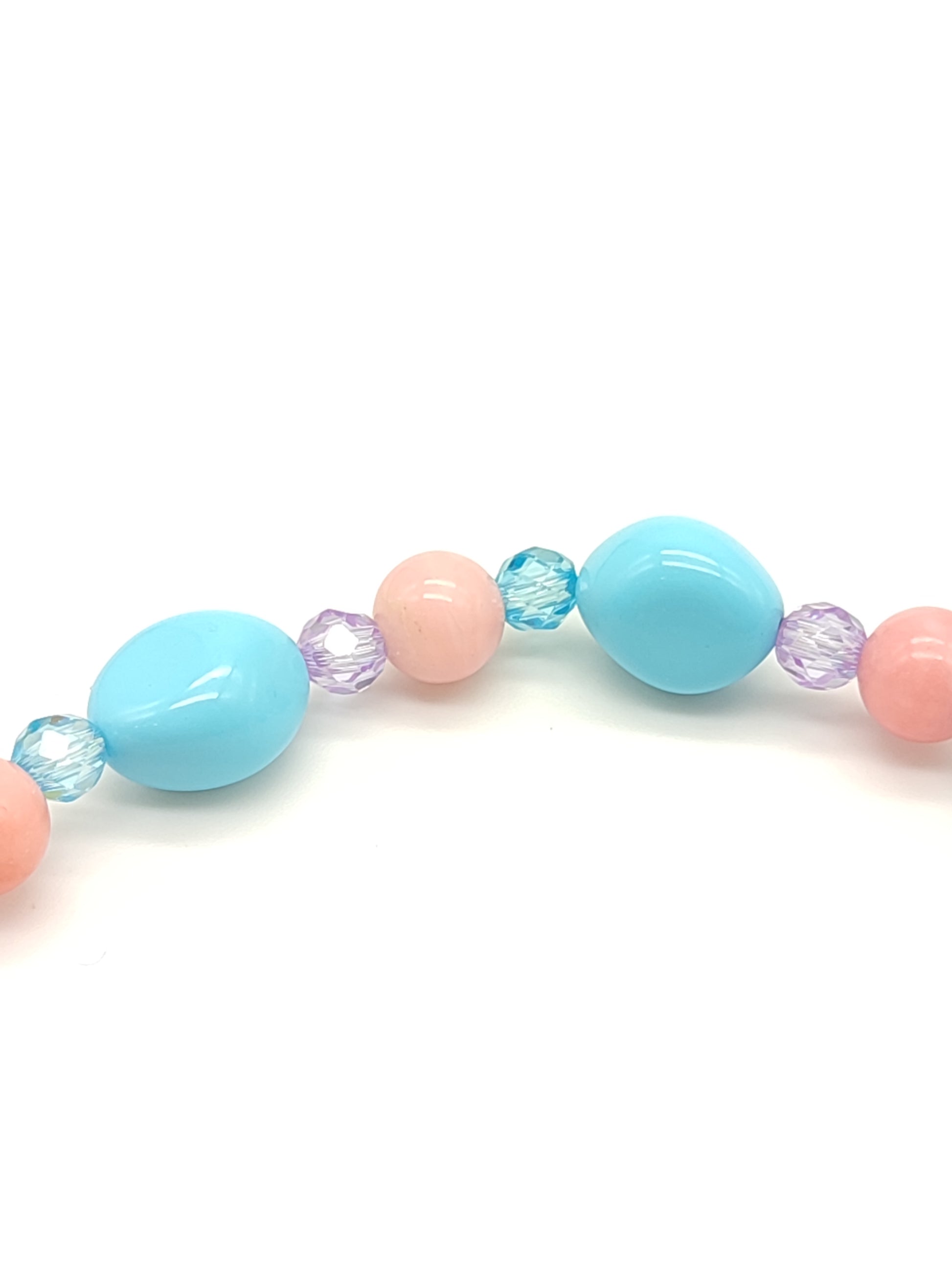 turchesi, coralli rosa, e zirconi di colore azzurro e rosa