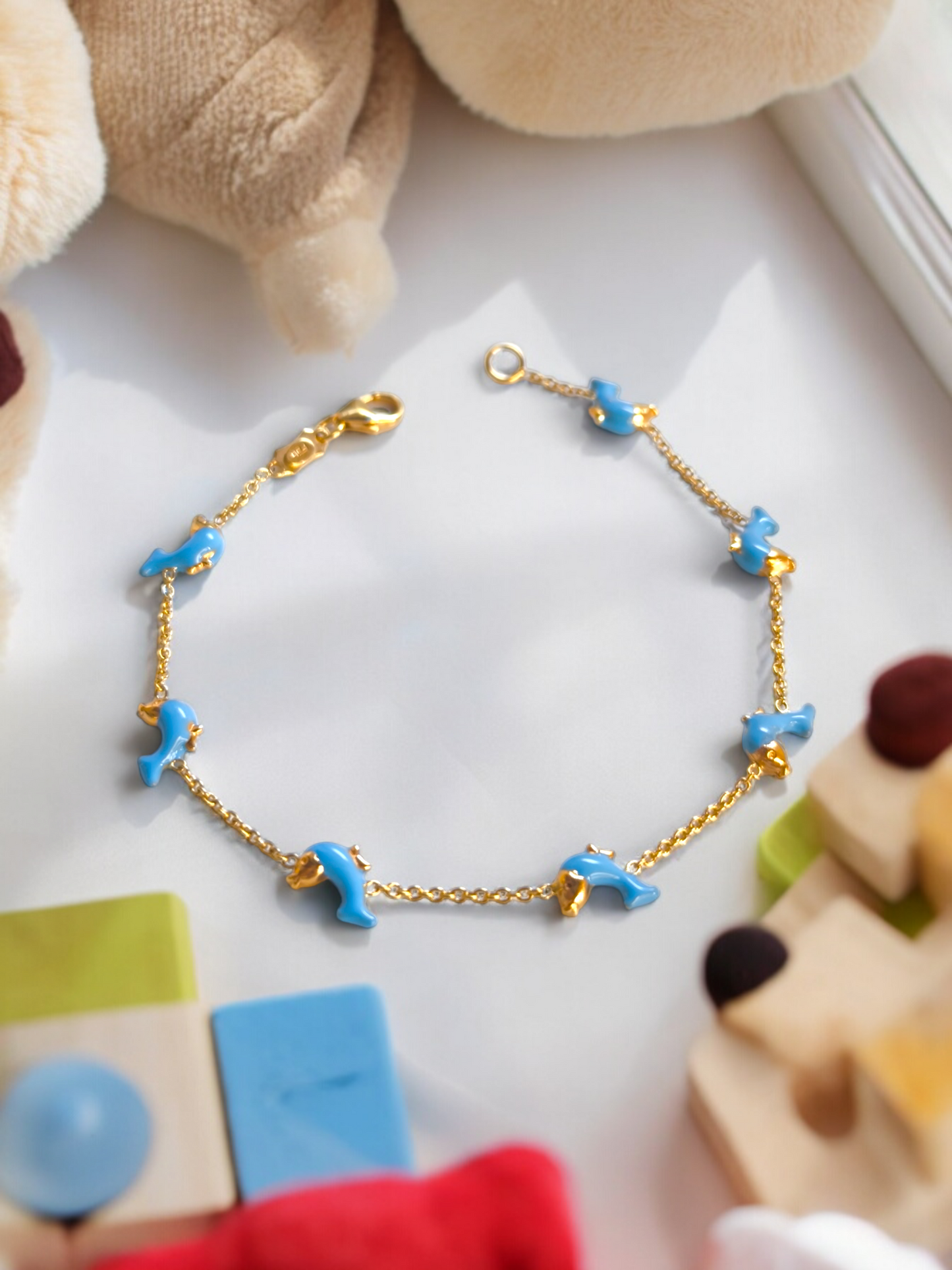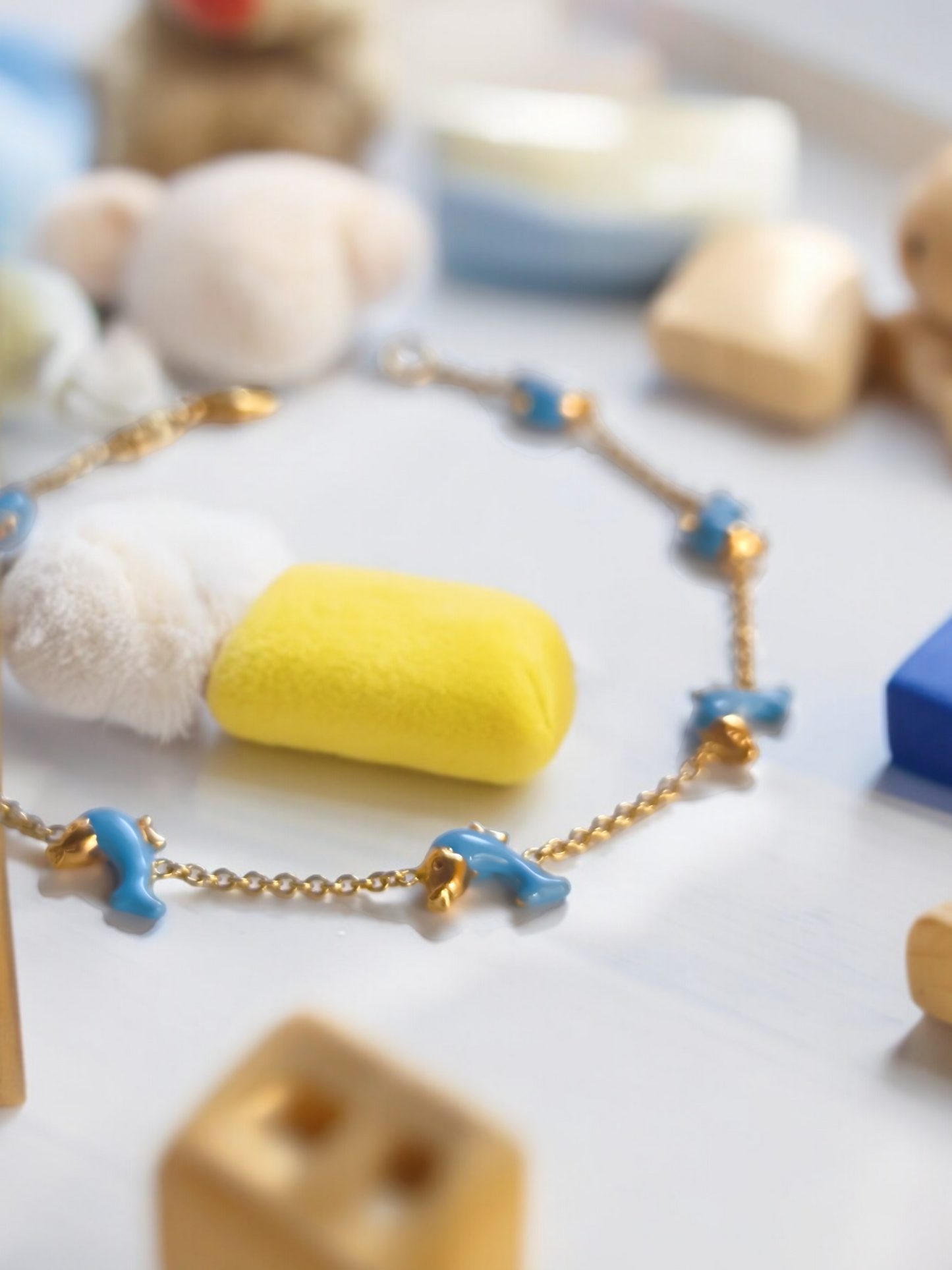 modello maglia rollina con intercalato delfini smaltati azzurri
