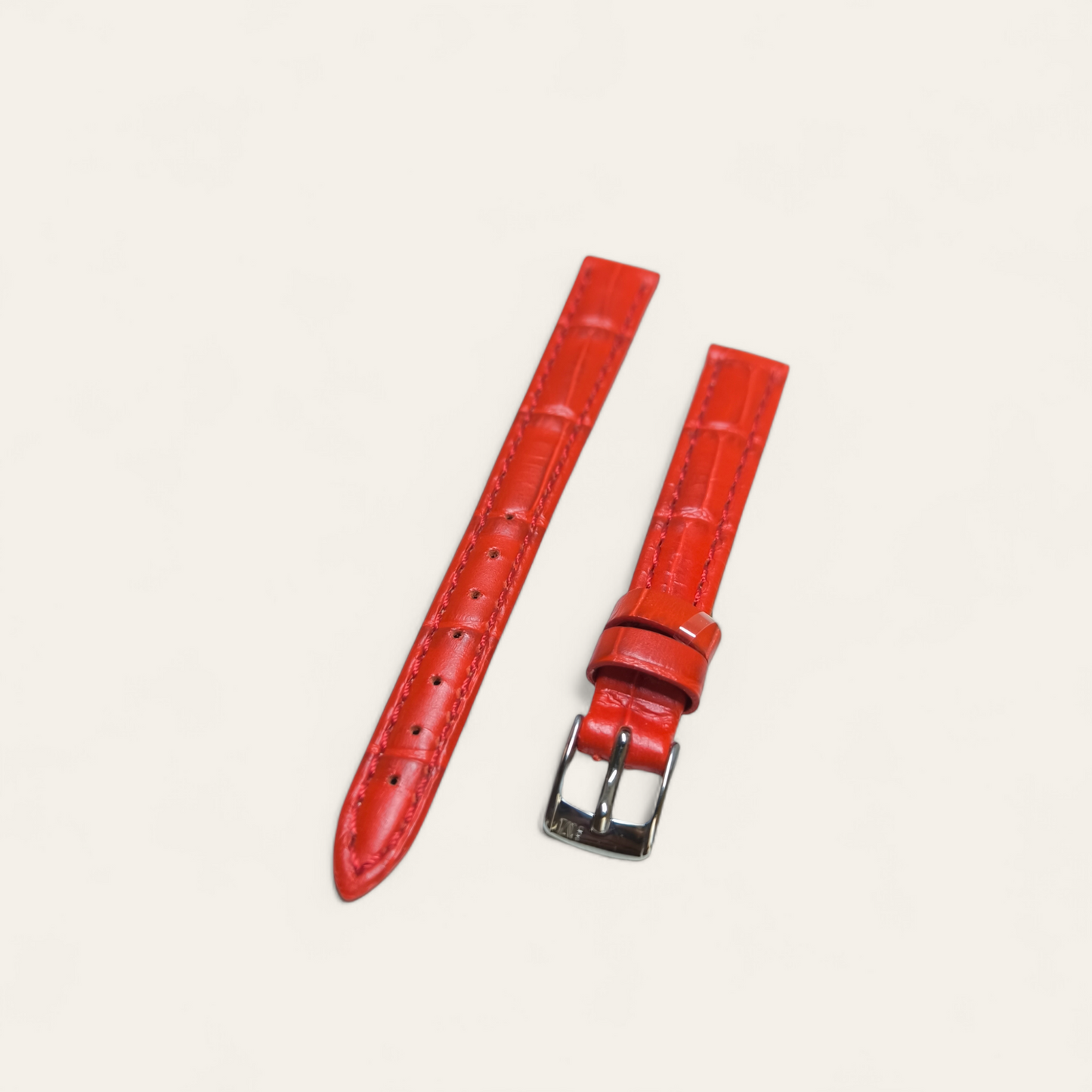 Cinturino Ansa 12 mm in pelle rossa accesa stampato coccodrillo