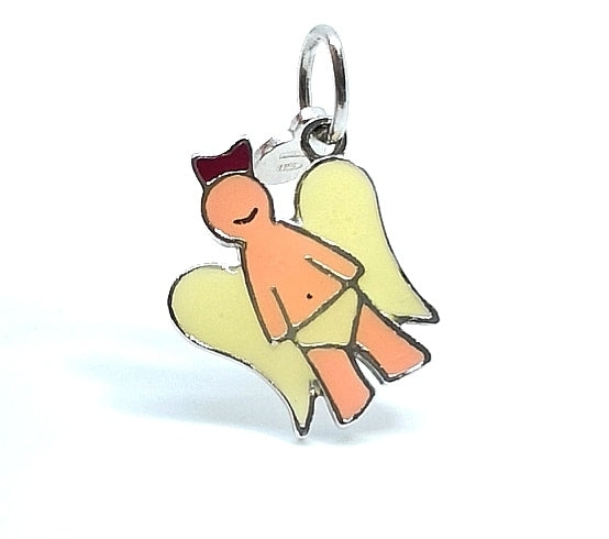 Collezione Angeli biricchini, ciondoli in argento smaltato a fuoco con Bimbo e Bimba angioletti .