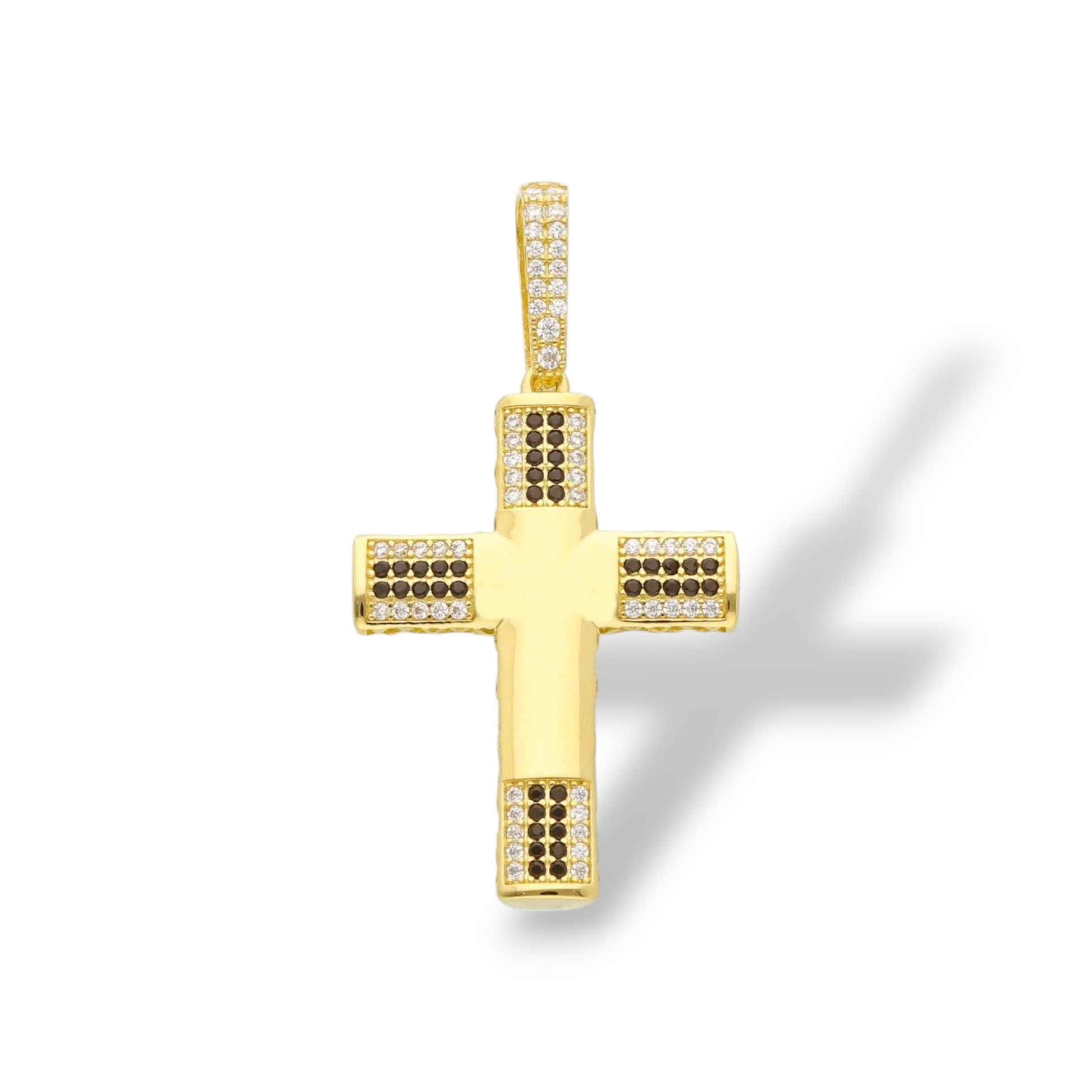 Ciondolo in oro a forma di Croce con pavè di zirconi