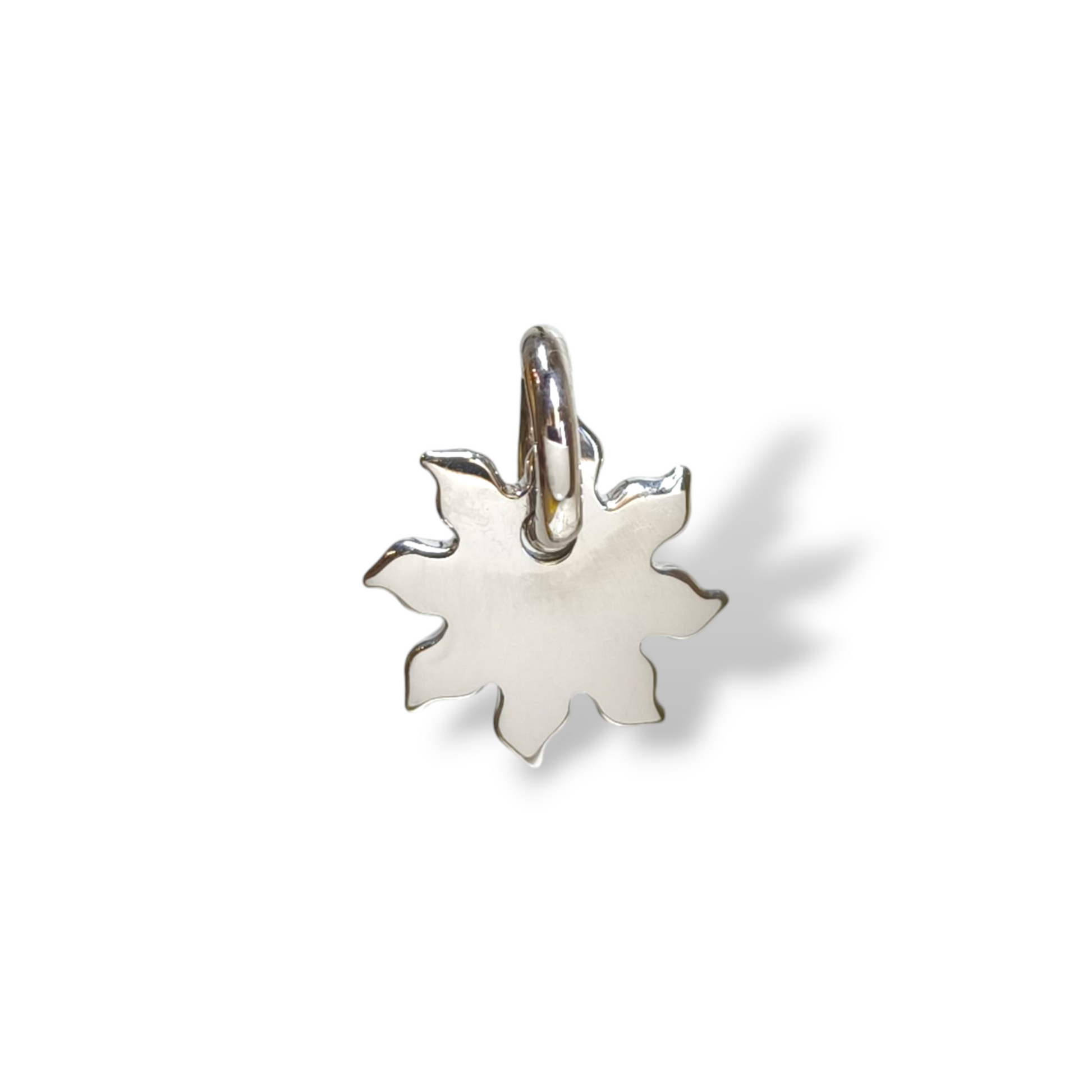 Attirerai gli sguardi con questo ciondolo oro bianco dalla forma di sole e dallo stile moderno. Realizzato in oro massiccio, è lucido ed elegante al tatto! 🌞👌