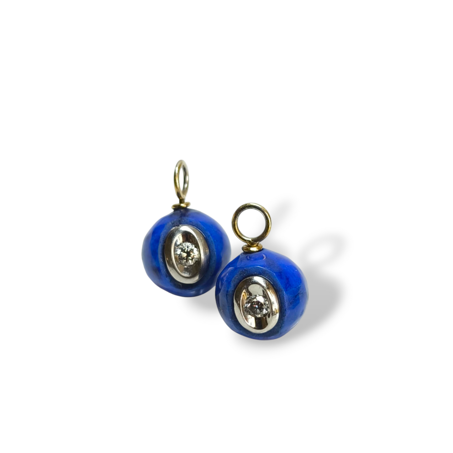 Coppia ciondoli in oro giallo platino e diamanti con lapislazzuli