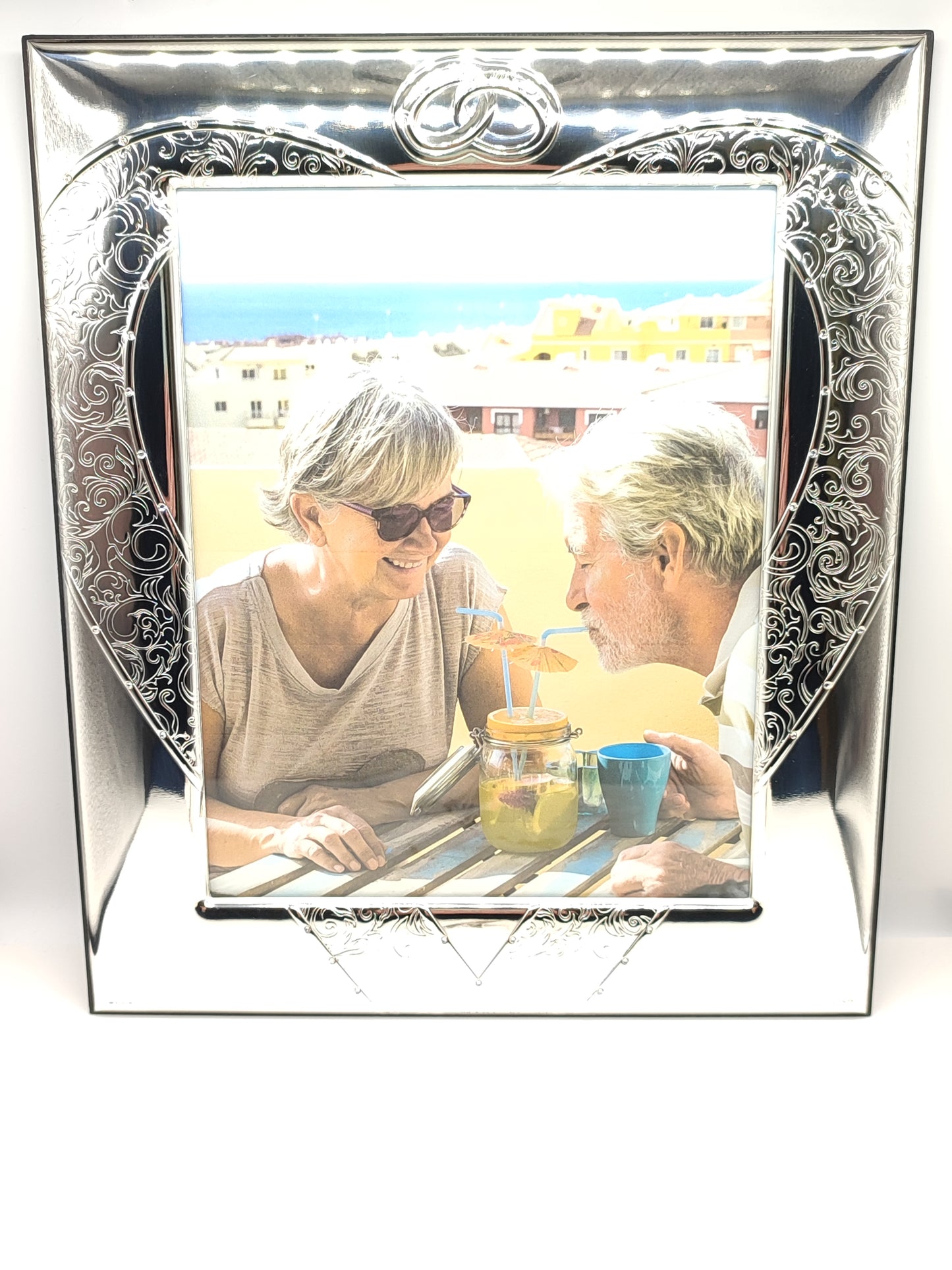Portafoto in argento Sequenze fedi con cuore lavorato 20x25cm