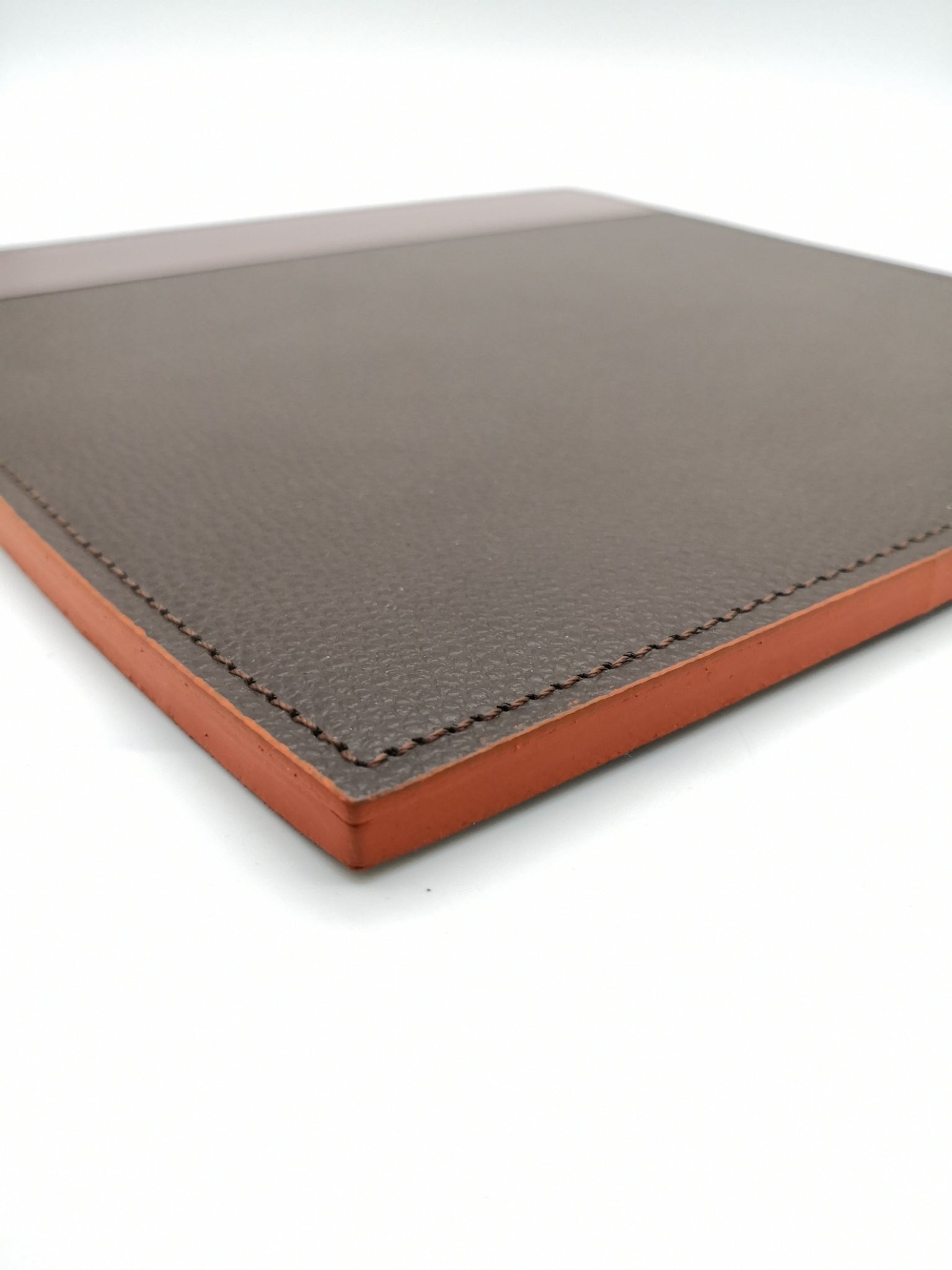 sotto mouse Sequenze in pelle marrone e cuoio arancio